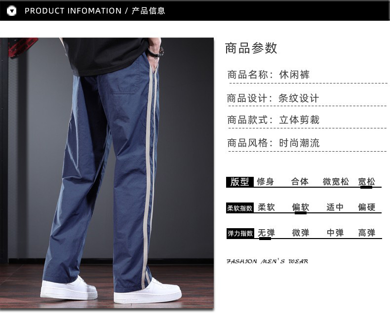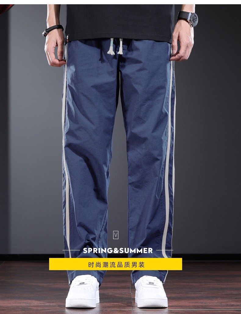 가장자리 측정 줄무늬 캐주얼 바지 남성용 여름 얇은 맞춤형 디자인 센스 루즈 스트레이트 바지 트렌디 브랜드 블루 남성용 바지스토어 가기