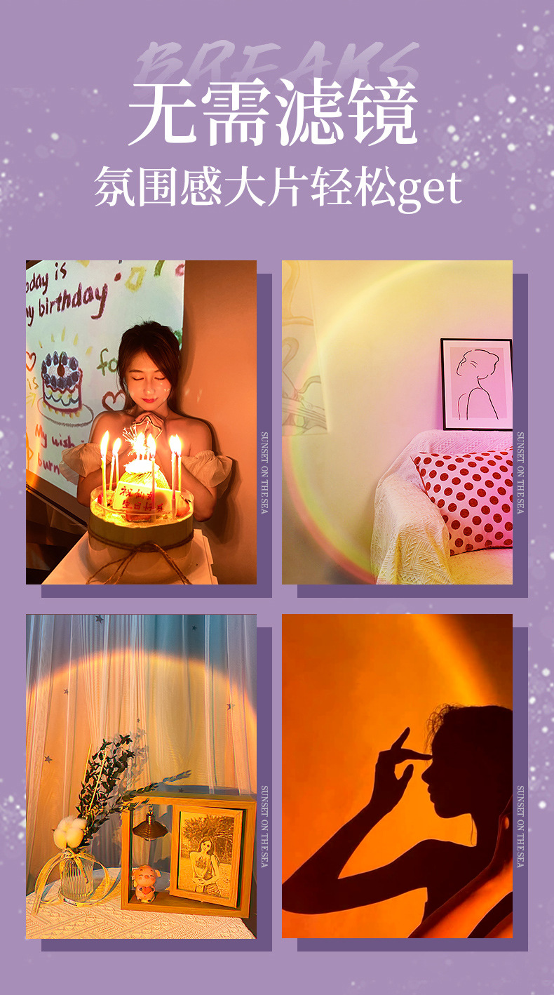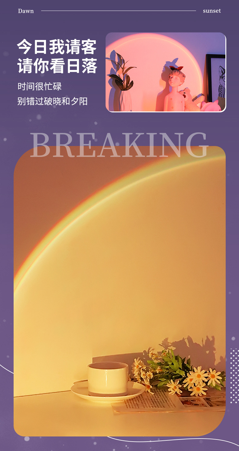 소스 공장 폭발 대기 빛 일몰 빛 라이브 셀카 LED 프로젝션 일몰 빛 일몰 빛 스패치 라이트 룸스토어 가기