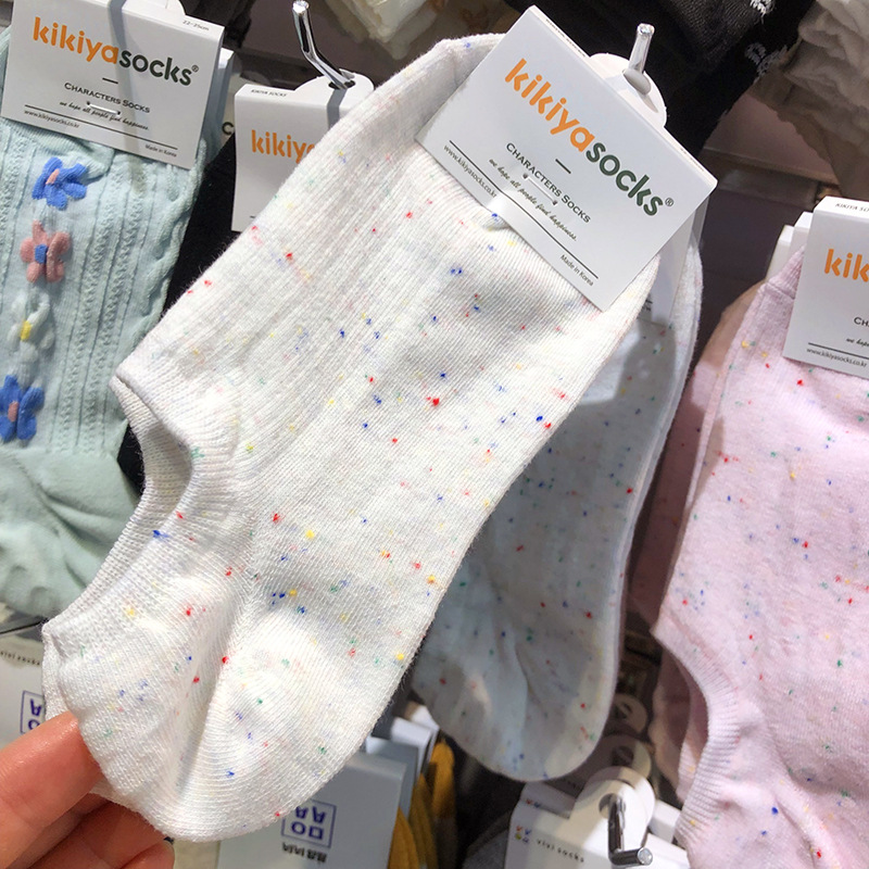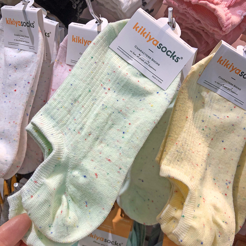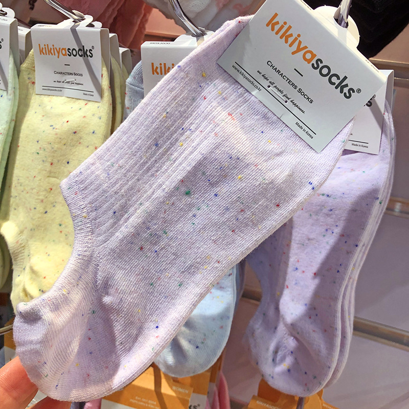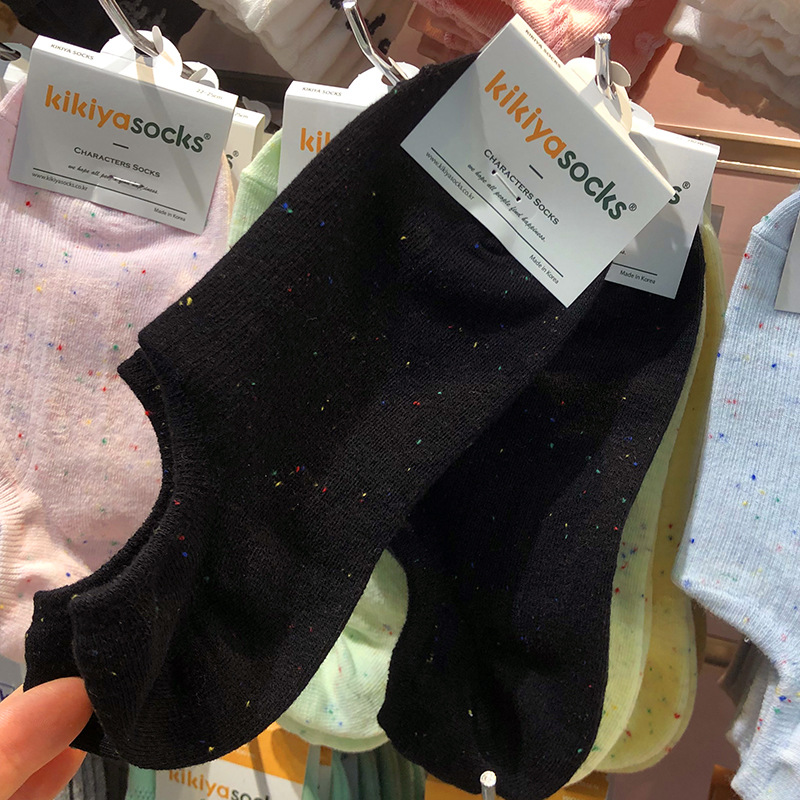 25kikiya 봄과 여름 새로운 보트 양말 한국 포인트 원사 miu 소녀 양말 도파민 단색 반대로 보이지 않음