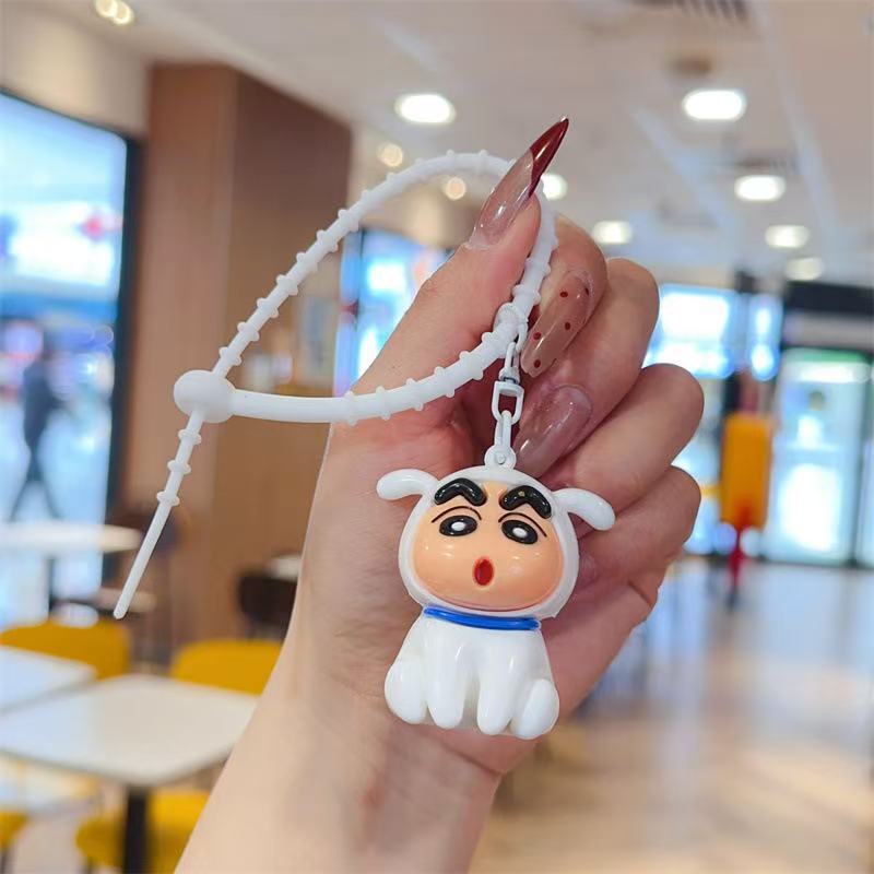 애니메이션 크레용 작은 새 자동차 키 체인 펜던트 원피스 업 작은 새 커플 가방 펜던트 부드러운 고무 작은 인형 도매