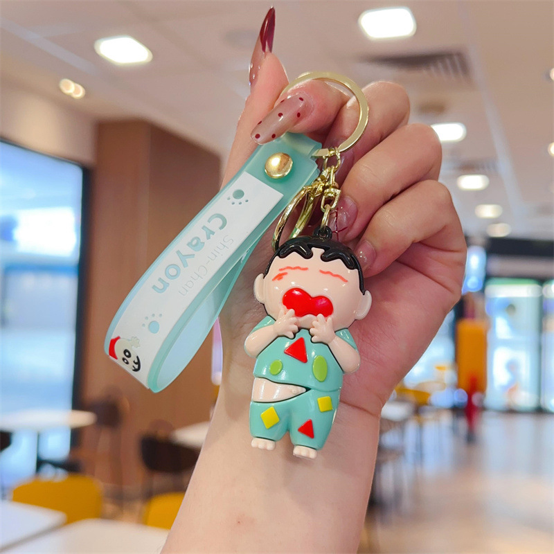 애니메이션 크레용 작은 새 자동차 키 체인 펜던트 원피스 업 작은 새 커플 가방 펜던트 부드러운 고무 작은 인형 도매스토어 가기