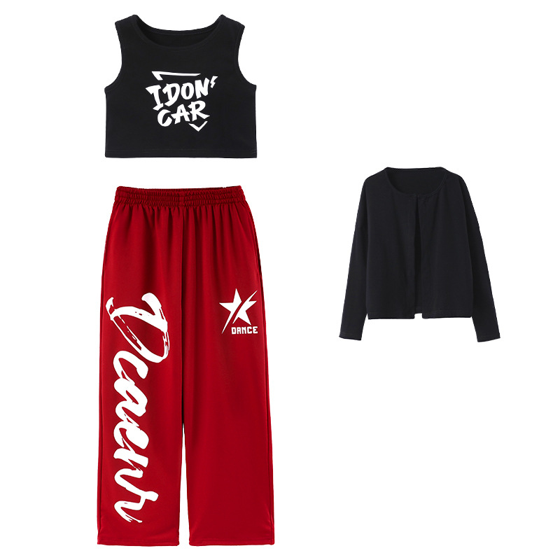 어린이 재즈 댄스 의상 폭발 거리 세트 Navel JAZZ 스트리트 댄스 공연 의상 소녀 댄스 쇼 패션 의상