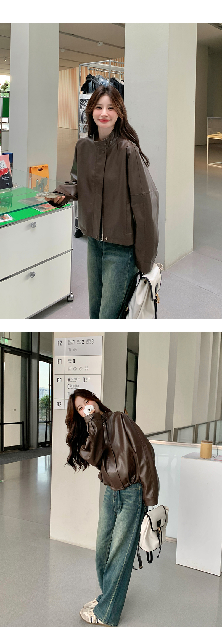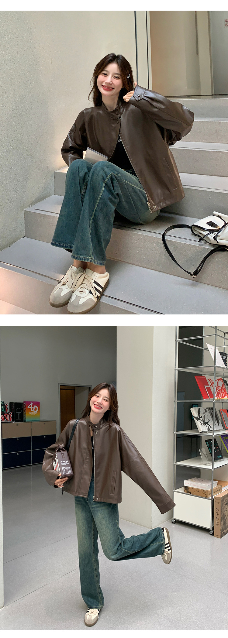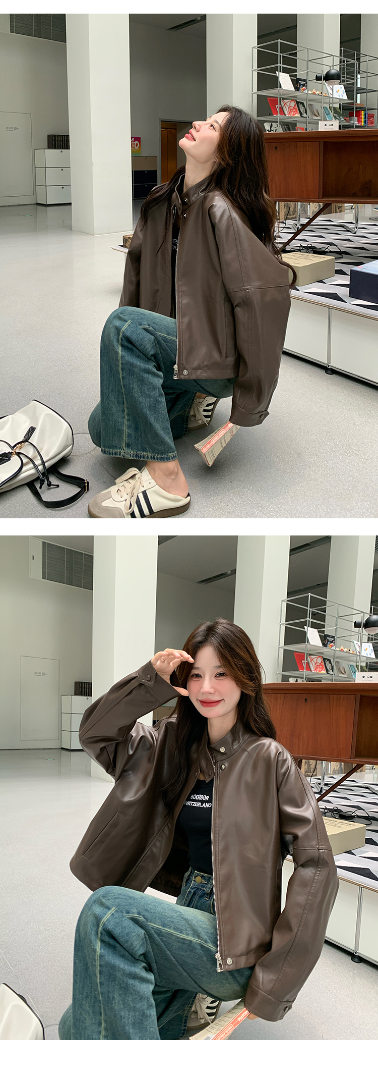 Maillard 다크 브라운 작은 가죽 자켓 여성의 2025 봄과 가을 새로운 감각 프라이드 스트리트 작은 바이커 재킷스토어 가기