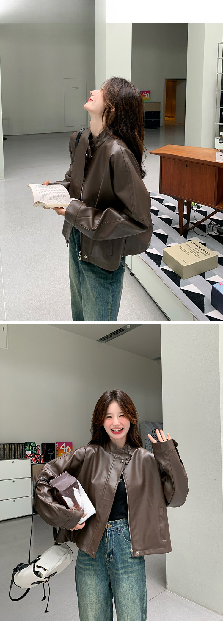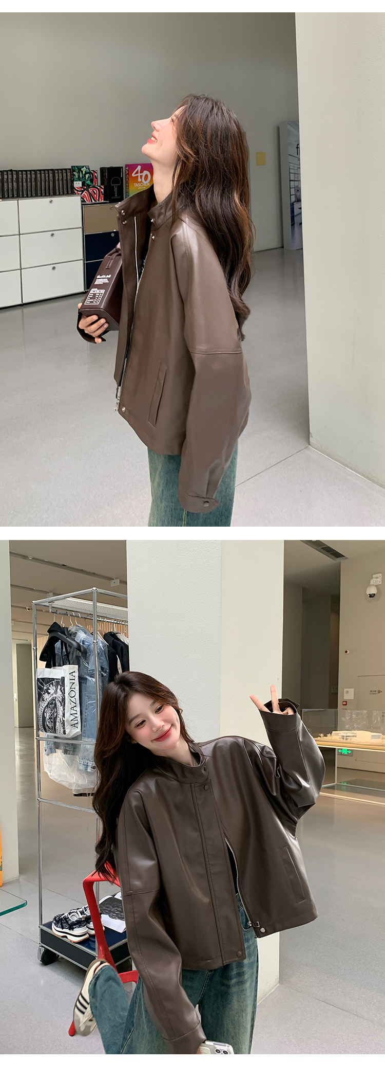Maillard 다크 브라운 작은 가죽 자켓 여성의 2025 봄과 가을 새로운 감각 프라이드 스트리트 작은 바이커 재킷