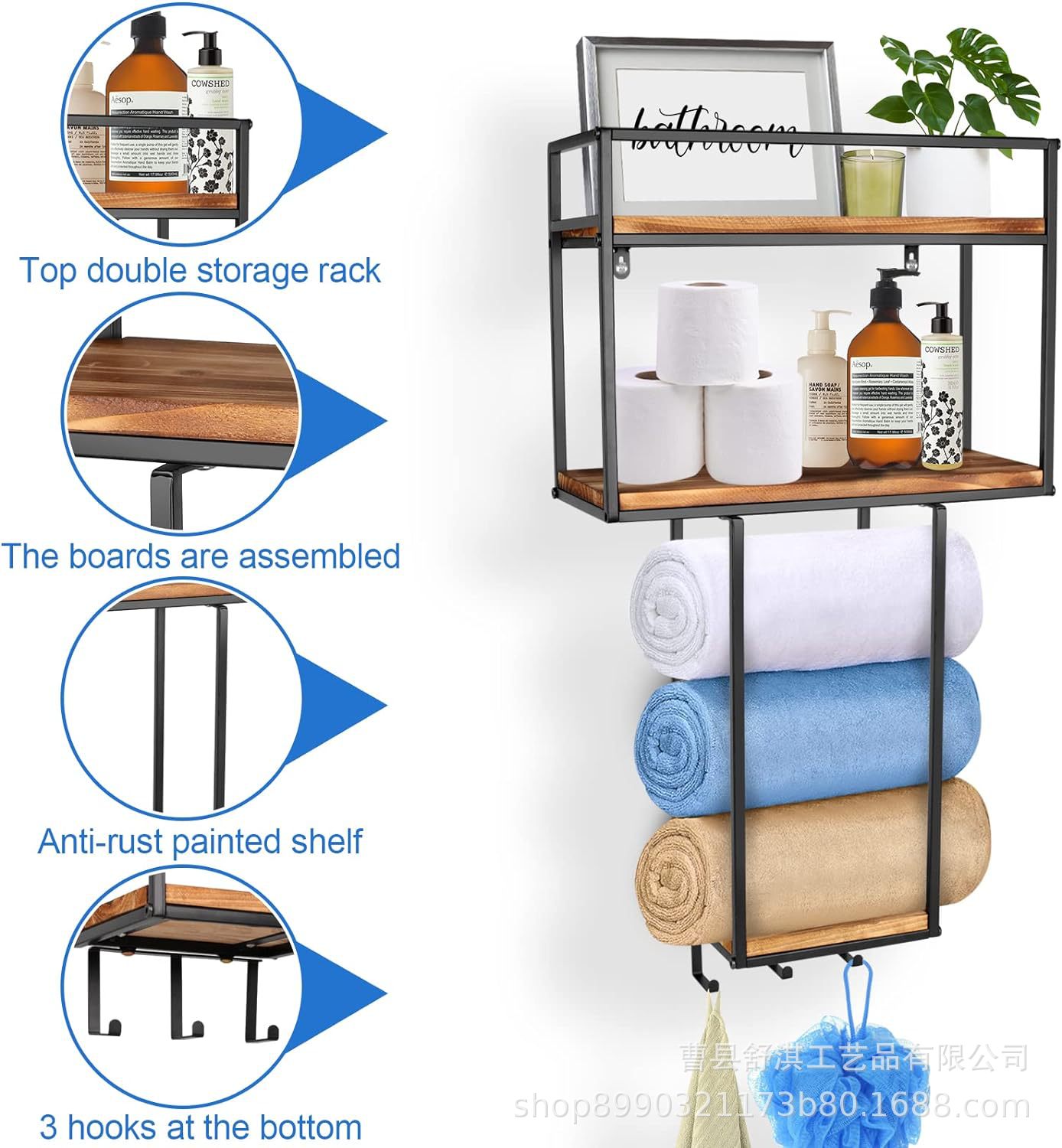 국경 간 새로운 수건 보관 랙 나무 벽걸이 형 금속 욕실 수건 랙 욕실 목욕 수건 수건 보관 랙