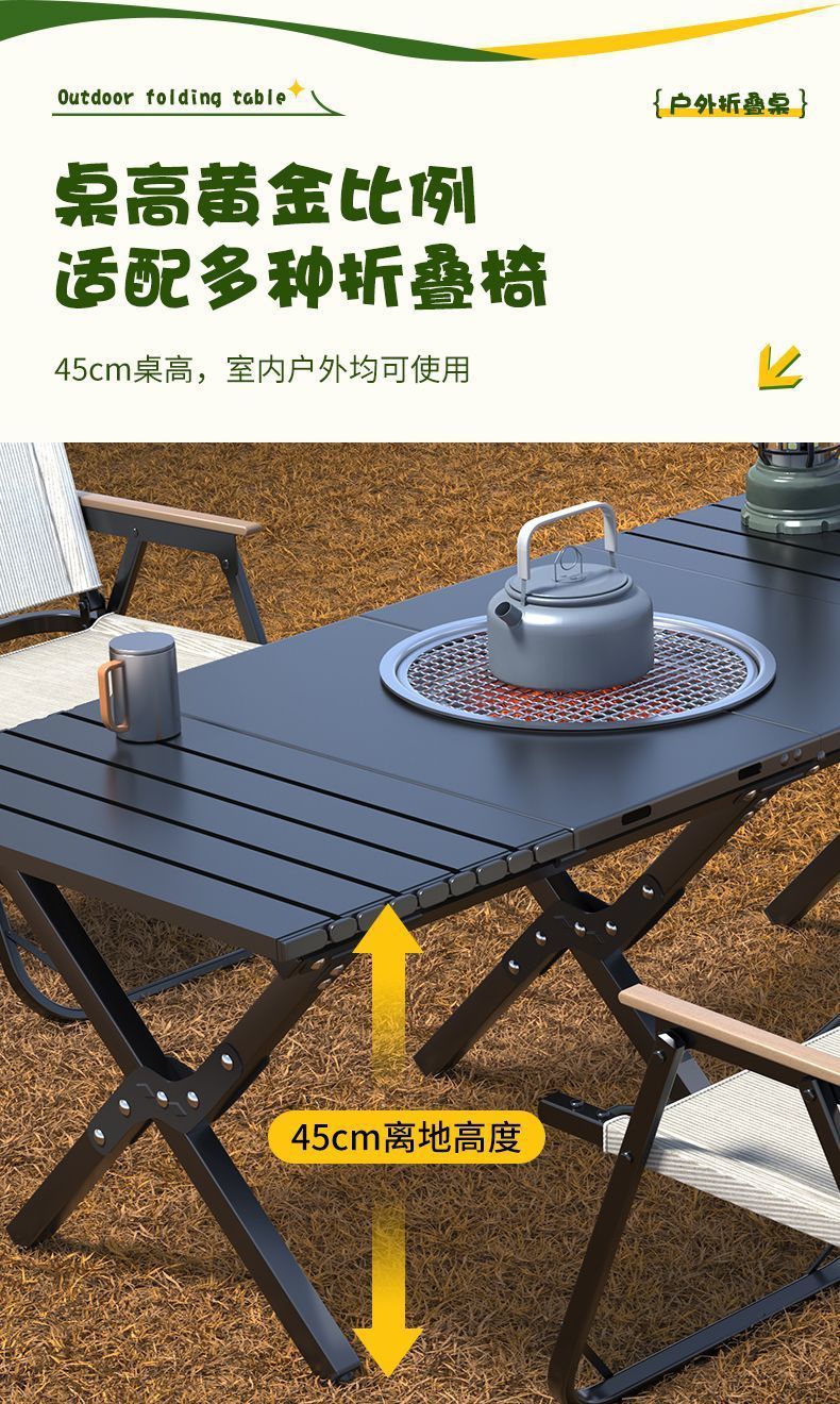 한 테이블 멀티 사용 야외 접이식 테이블과 의자 세트 요리 차 계란 롤 테이블 가정용 바베큐 스톨 야외 바베큐