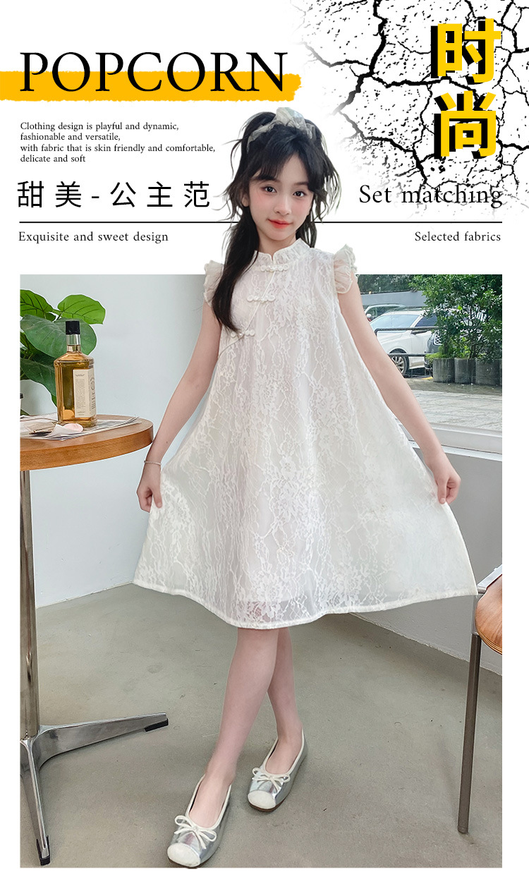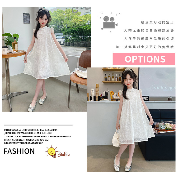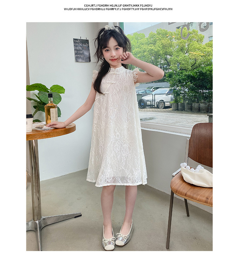 여자 고대 스타일 드레스 2025 여름 새로운 스타일 중대형 어린이 유행 중국 스타일 롱 스커트 레이스 스커트