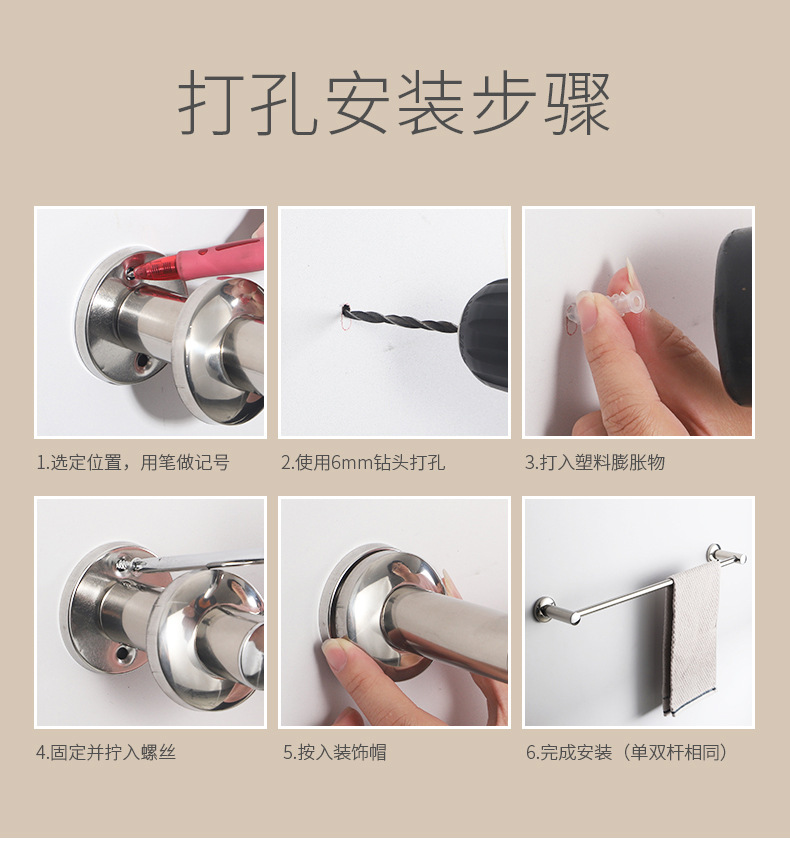 ♔304 욕실 타월 랙 두꺼운 스테인레스 스틸 싱글 로드 호텔 더블로드 타월 랙 욕실 타월 랙스토어 가기