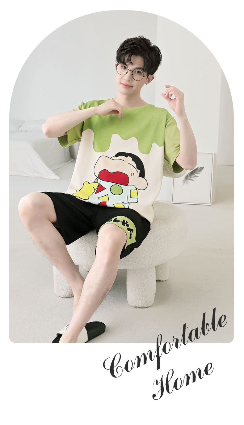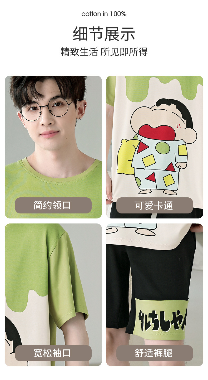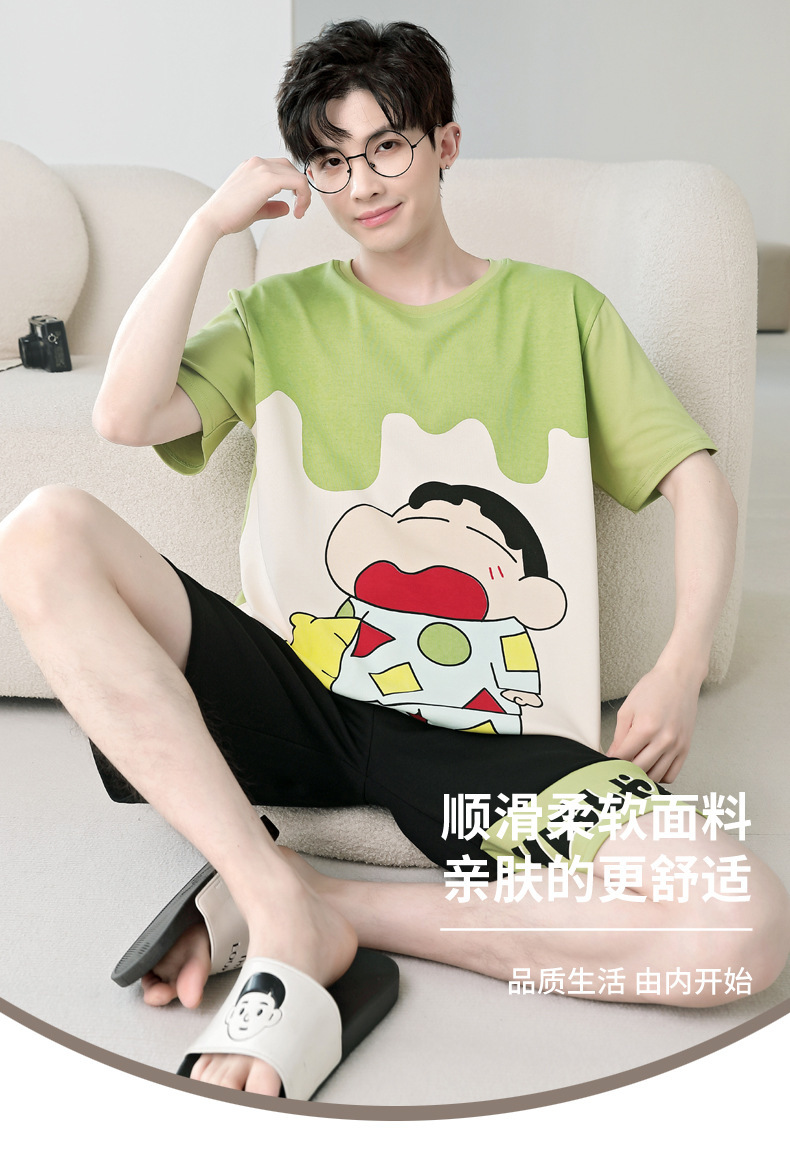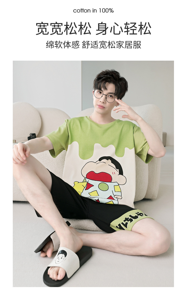 크레용 신짱 잠옷 남성용 2025 신작 여름 순면 반팔 반바지 투피스 세트 귀여운 인터넷 연예인 가정복스토어 가기