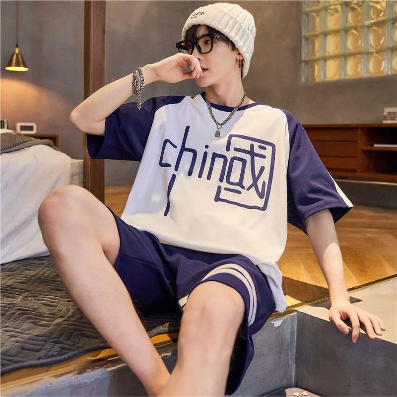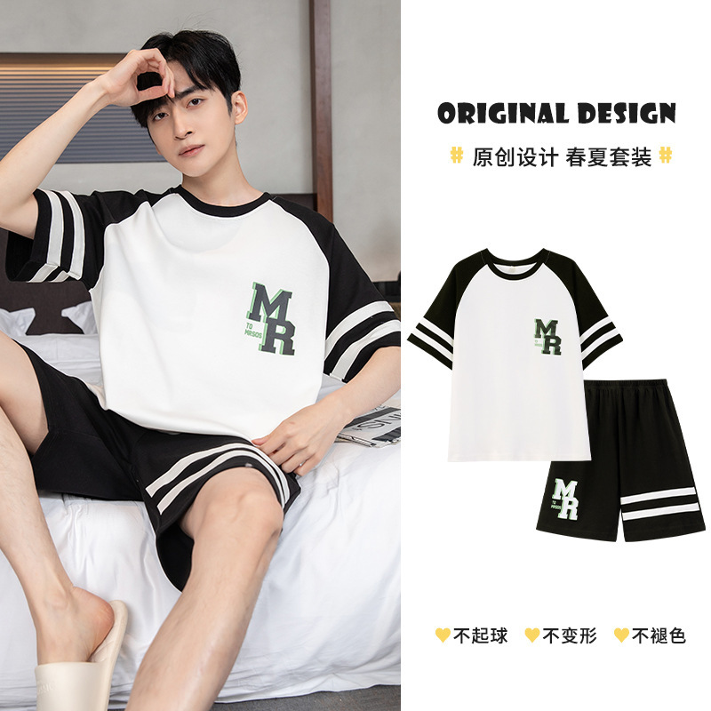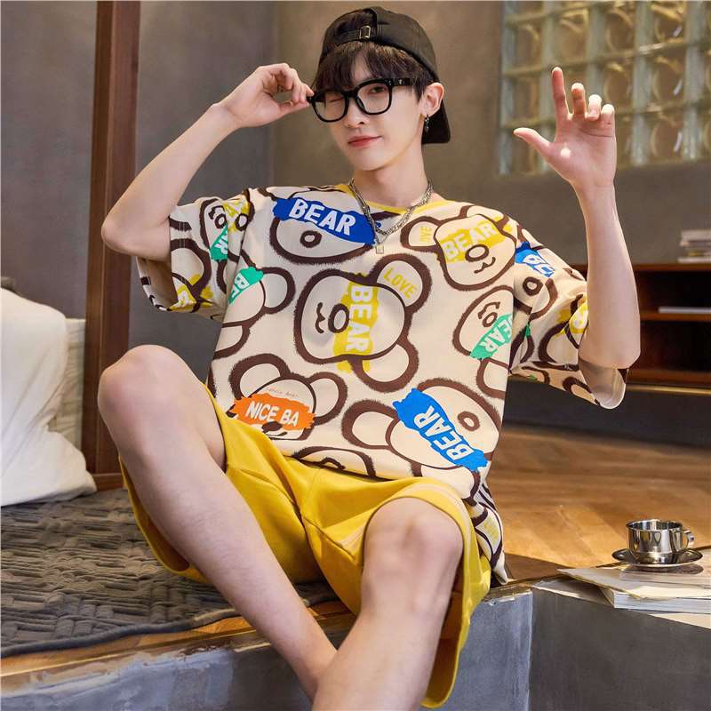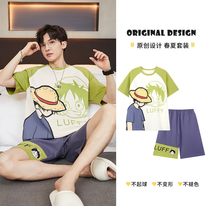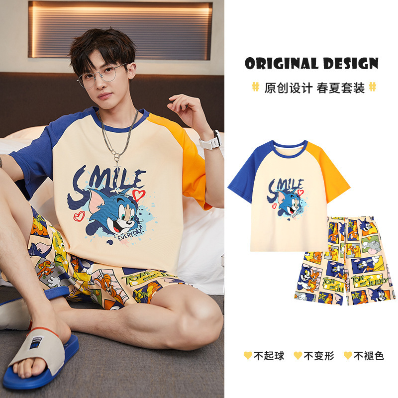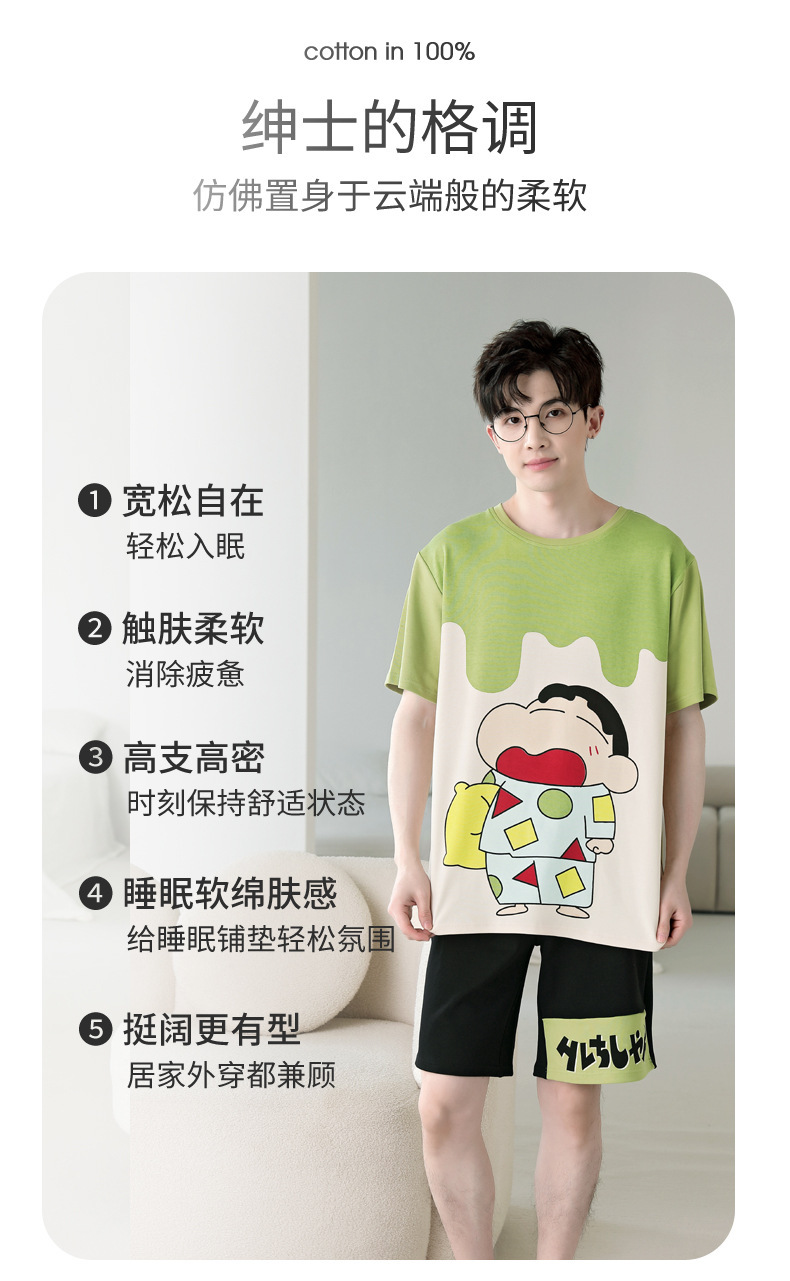 크레용 신짱 잠옷 남성용 2025 신작 여름 순면 반팔 반바지 투피스 세트 귀여운 인터넷 연예인 가정복스토어 가기