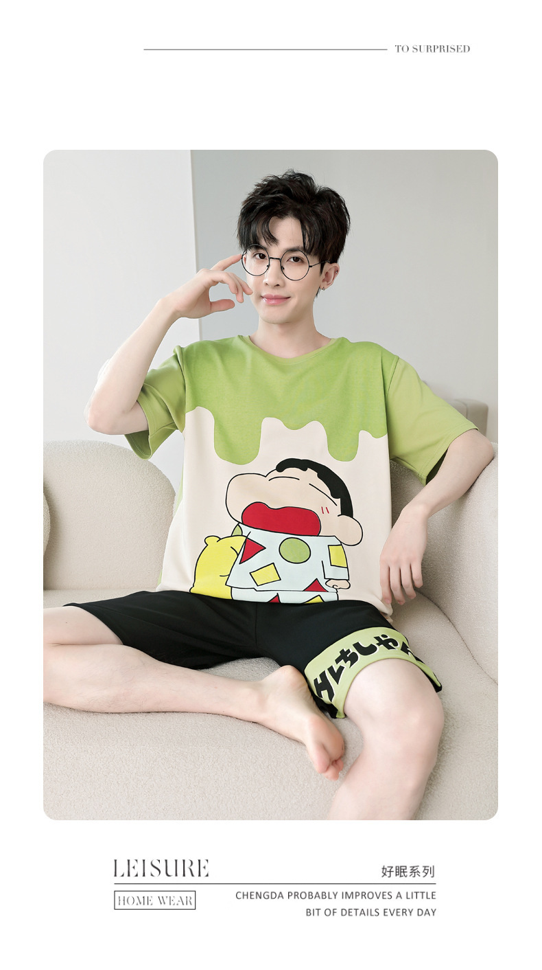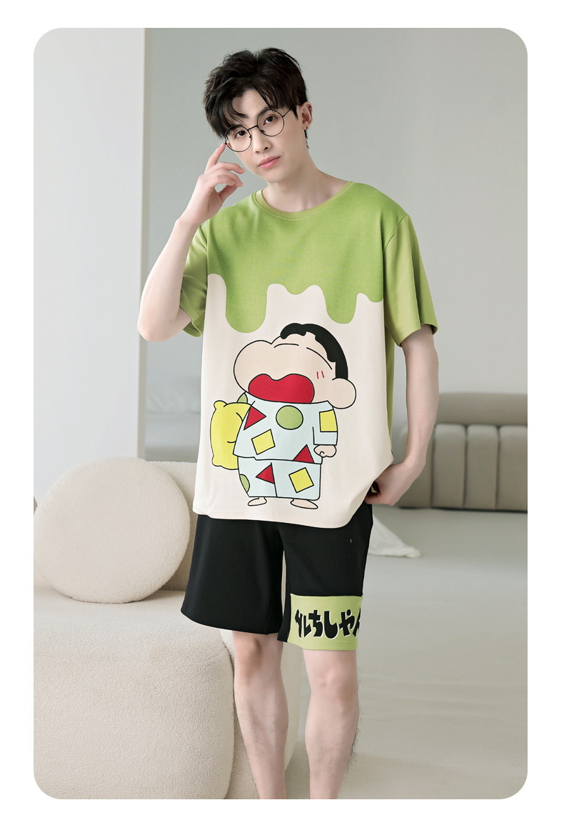 크레용 신짱 잠옷 남성용 2025 신작 여름 순면 반팔 반바지 투피스 세트 귀여운 인터넷 연예인 가정복