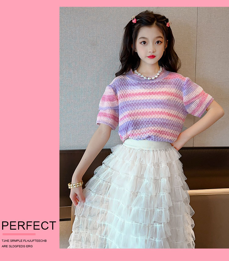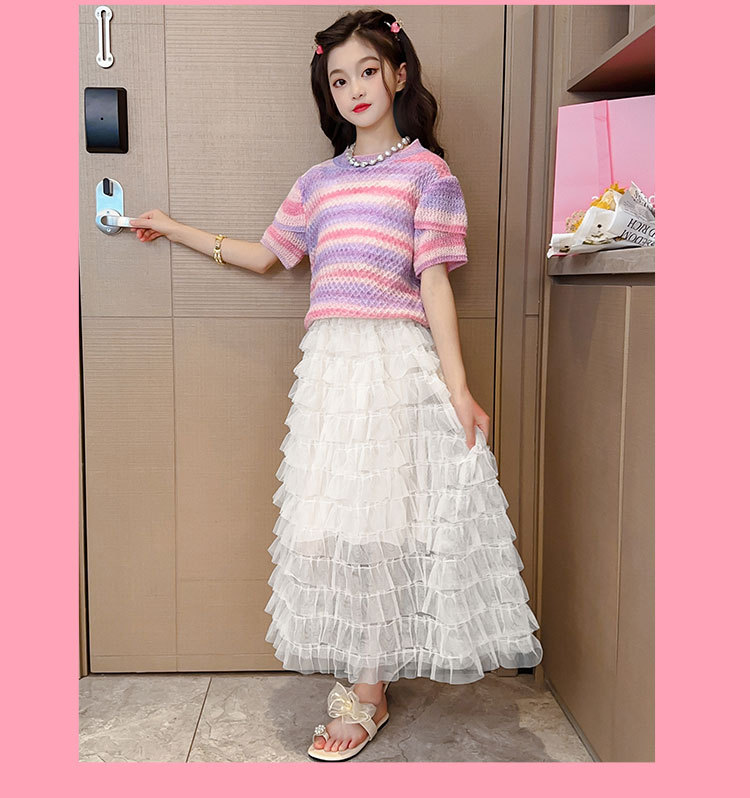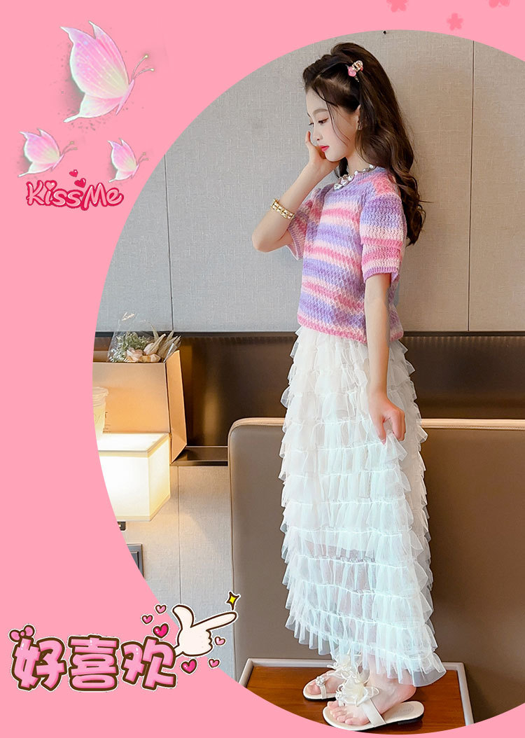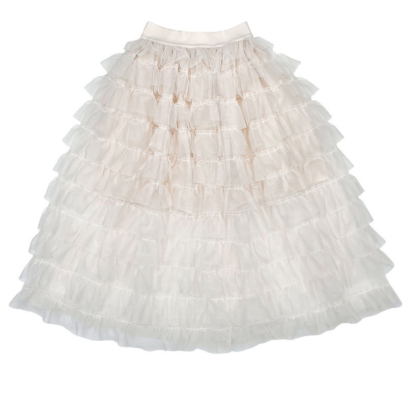 여아 메쉬 스커트, 한국 스타일 인터넷 연예인 캠퍼스 롱 스커트, 케이크 스커트, 2025 여름 신작 화이트 스커트
