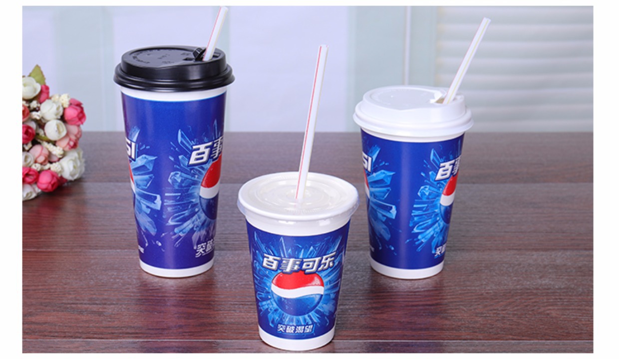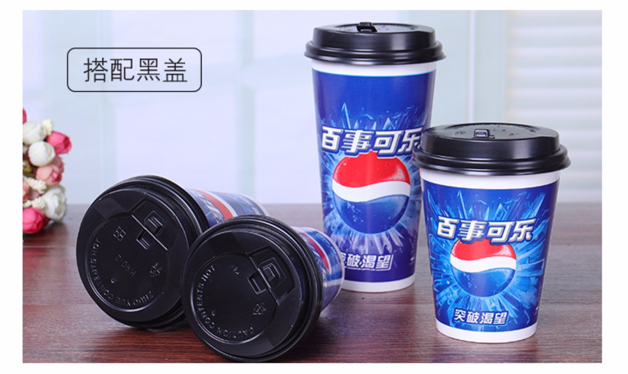 콜라 컵 뚜껑이 있는 일회용 종이컵 두꺼운 이중 코팅 차가운 음료 컵 맛있는 펩시 콜라 컵 1000개스토어 가기