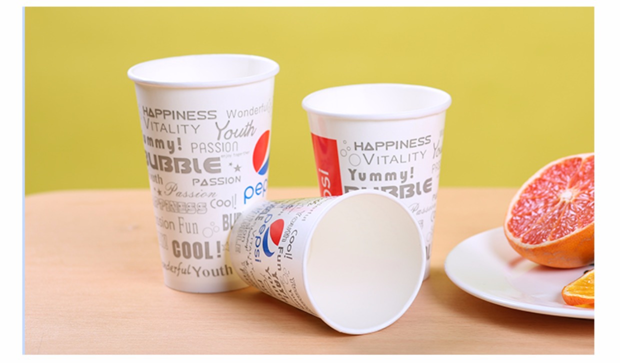 콜라 컵 뚜껑이 있는 일회용 종이컵 두꺼운 이중 코팅 차가운 음료 컵 맛있는 펩시 콜라 컵 1000개