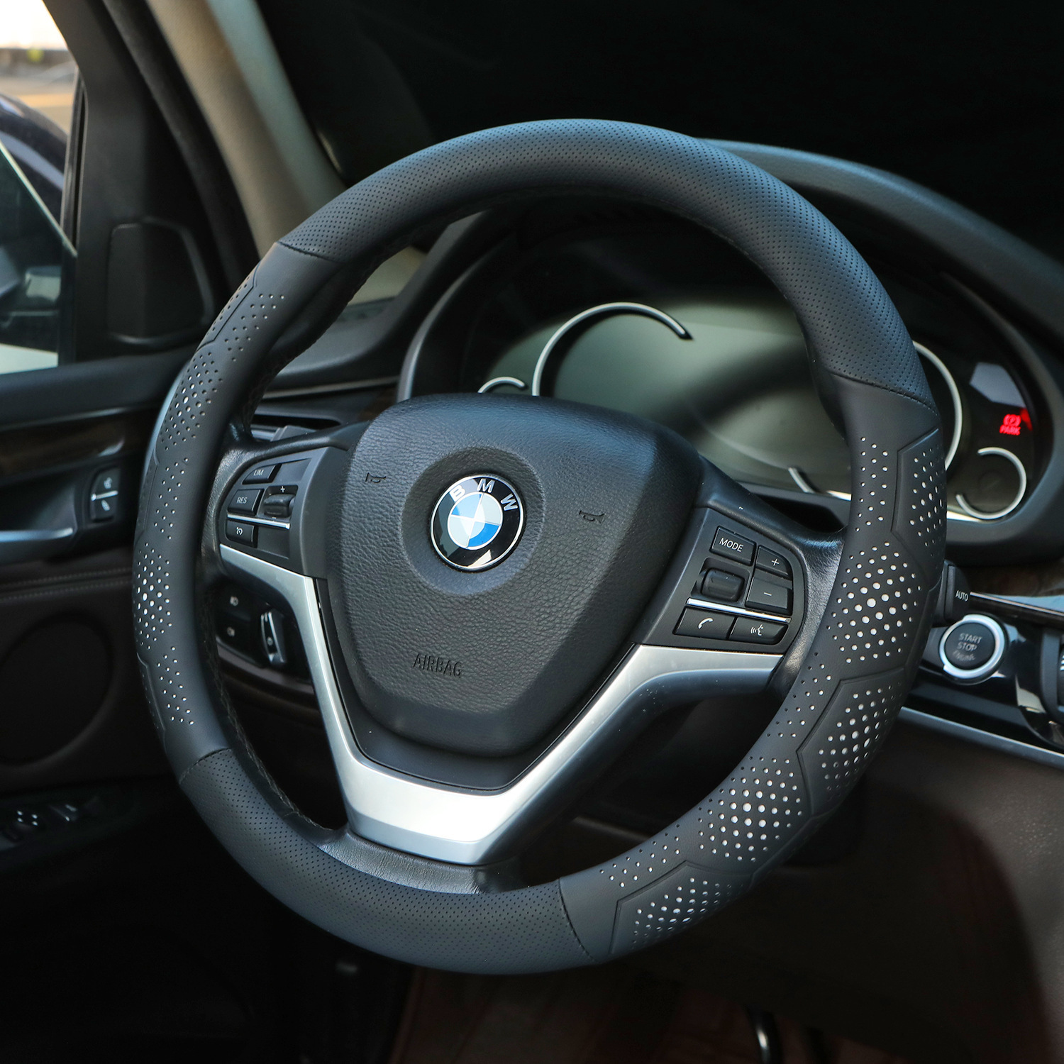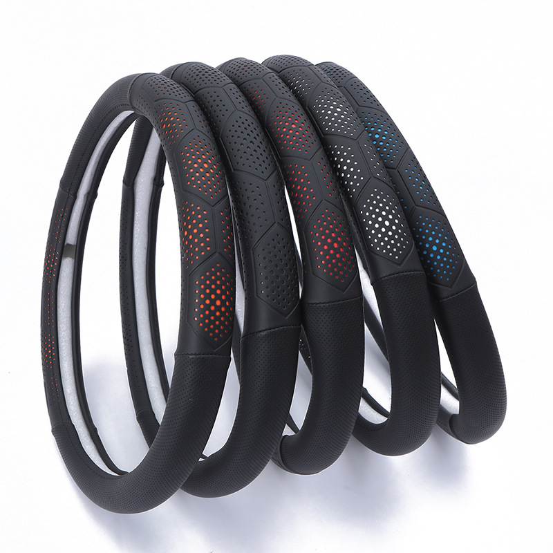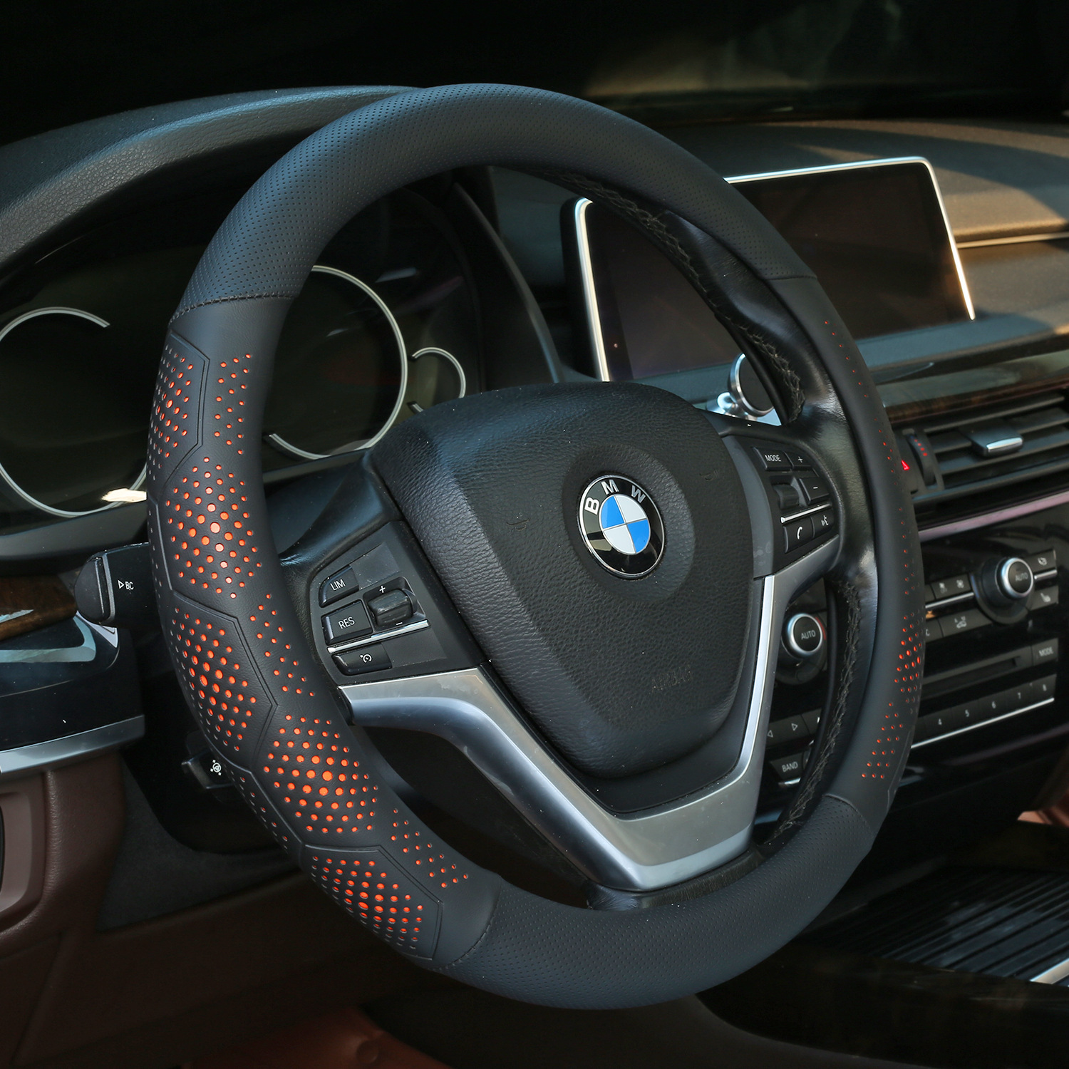 남성과 여성을 위한 국경 간 자동차 핸들 커버 여름 패션 땀 흡수 미끄럼 방지 핸들 커버 3D 입체 인쇄 가죽 핸들 커버