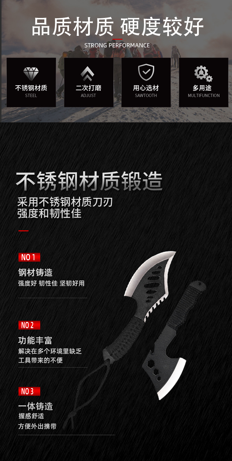 스테인리스 도끼 다기능 휴대용 캠핑 도끼 장작칼 야외 휴대용 캠핑 도끼 가볍고 내구성 있음