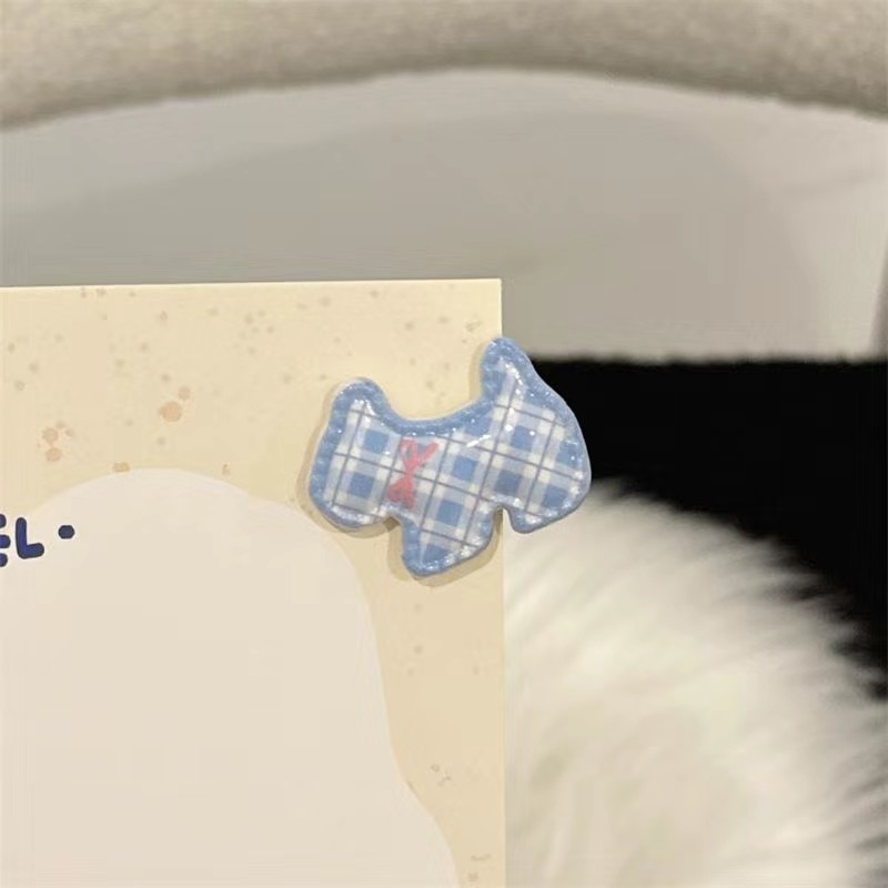 • 수리된 후크 투명 체크 무늬 블루 리본