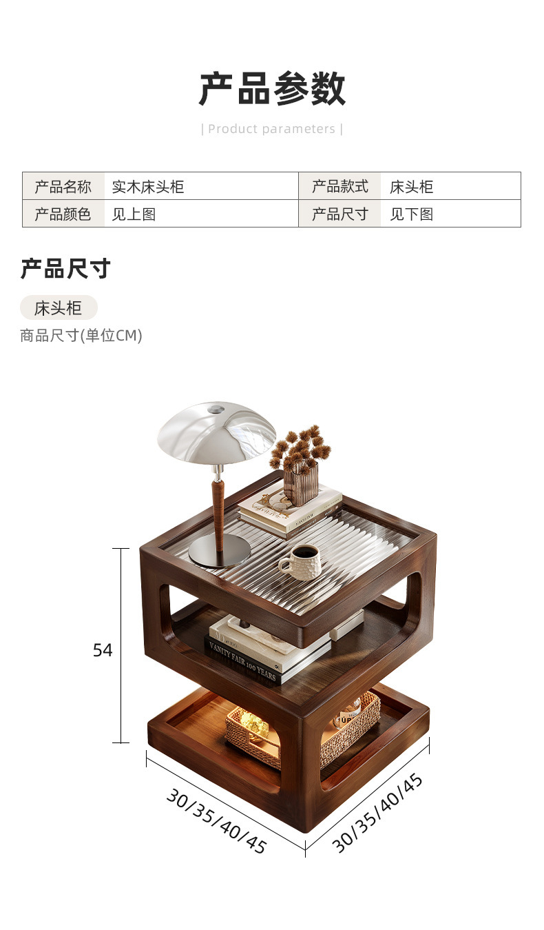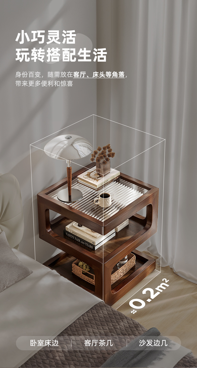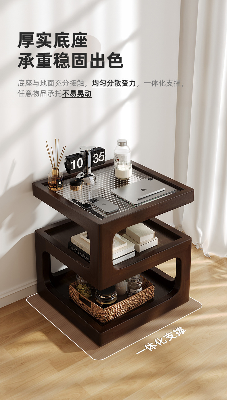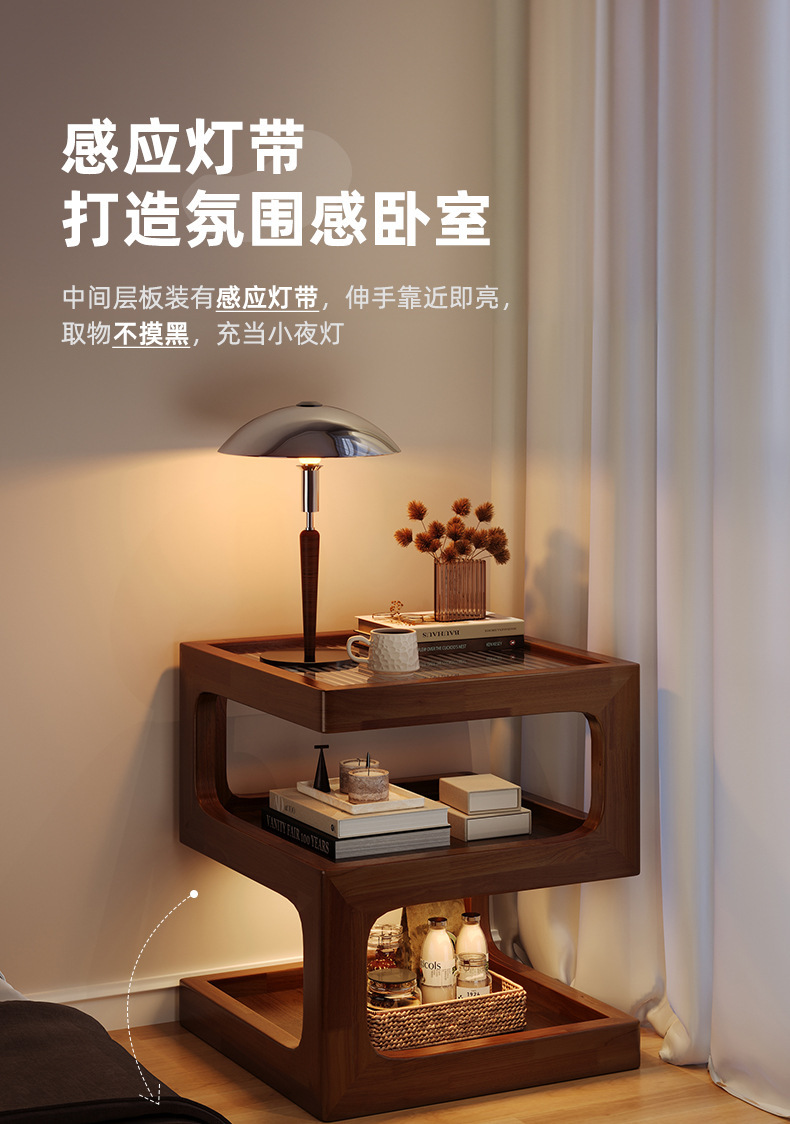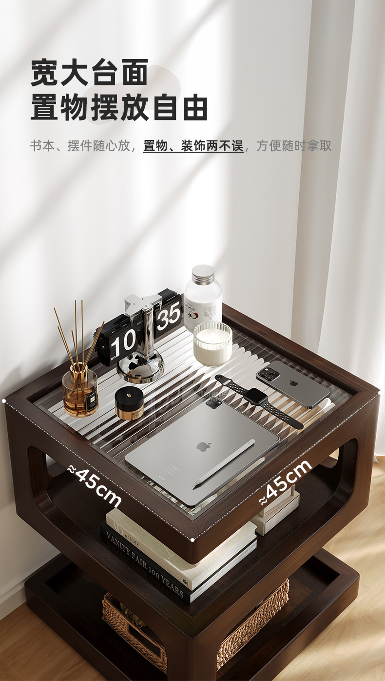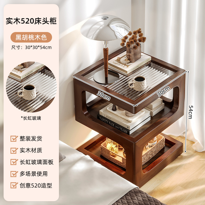 中古风床头小边几创意迷你全实木床头柜置物架黑胡桃色小茶几可爱
