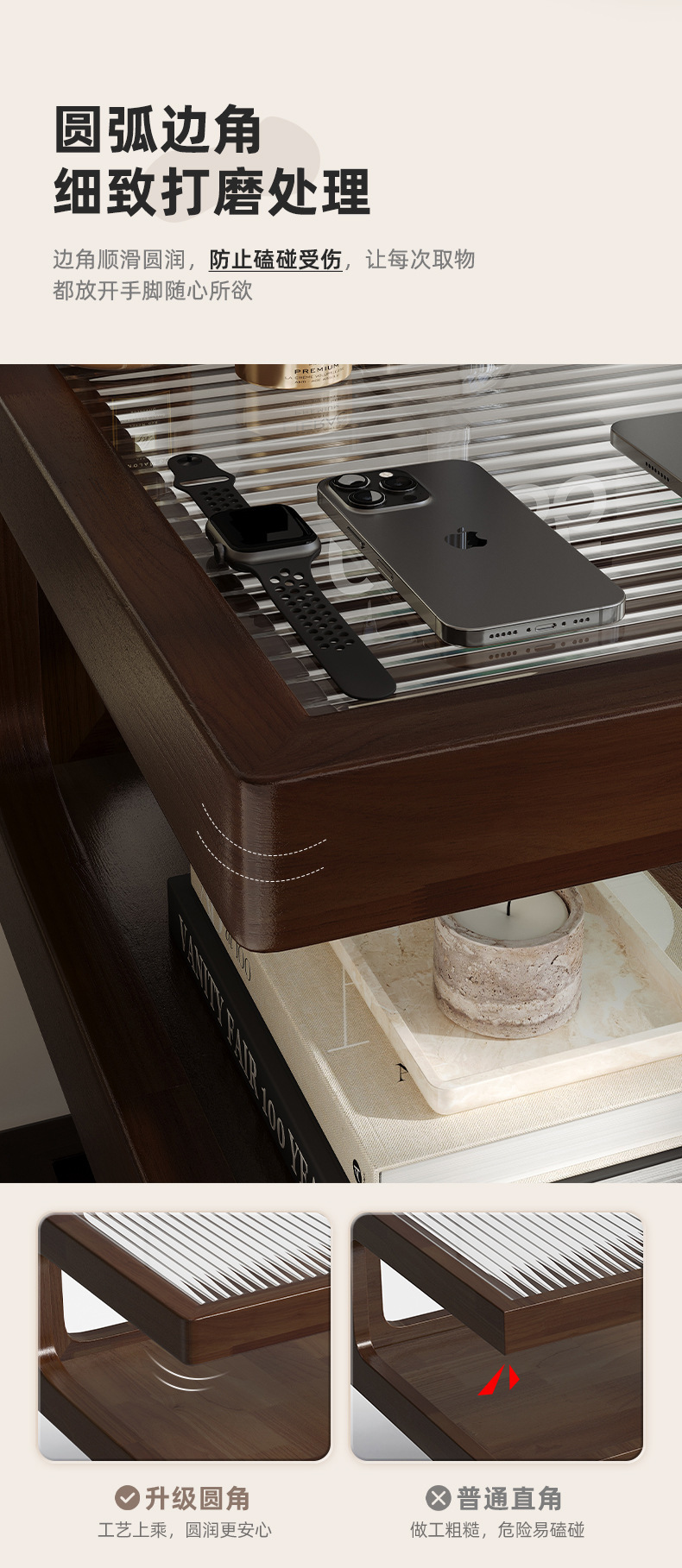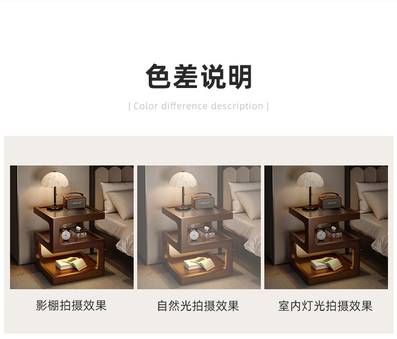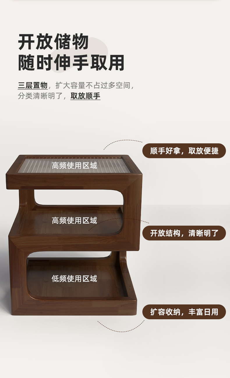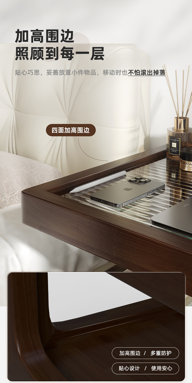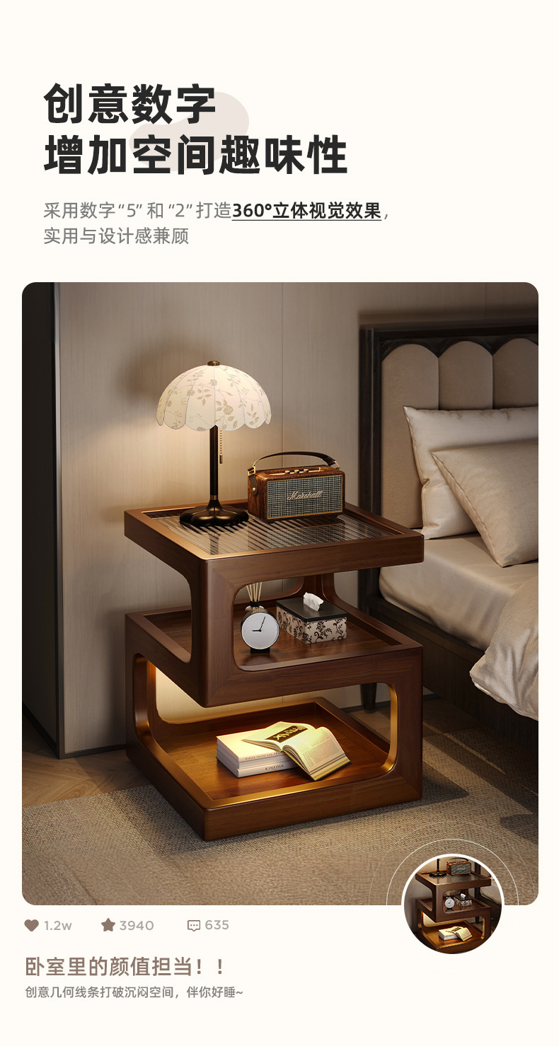 中古风床头小边几创意迷你全实木床头柜置物架黑胡桃色小茶几可爱