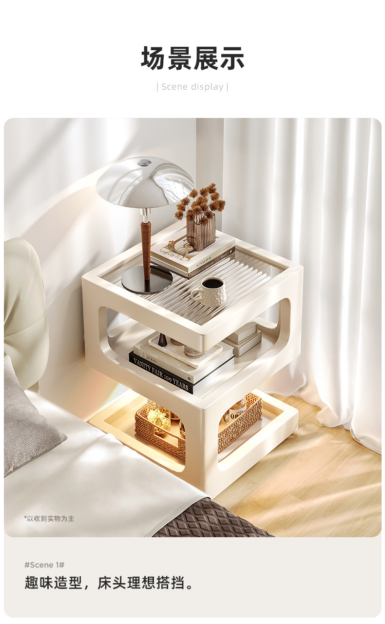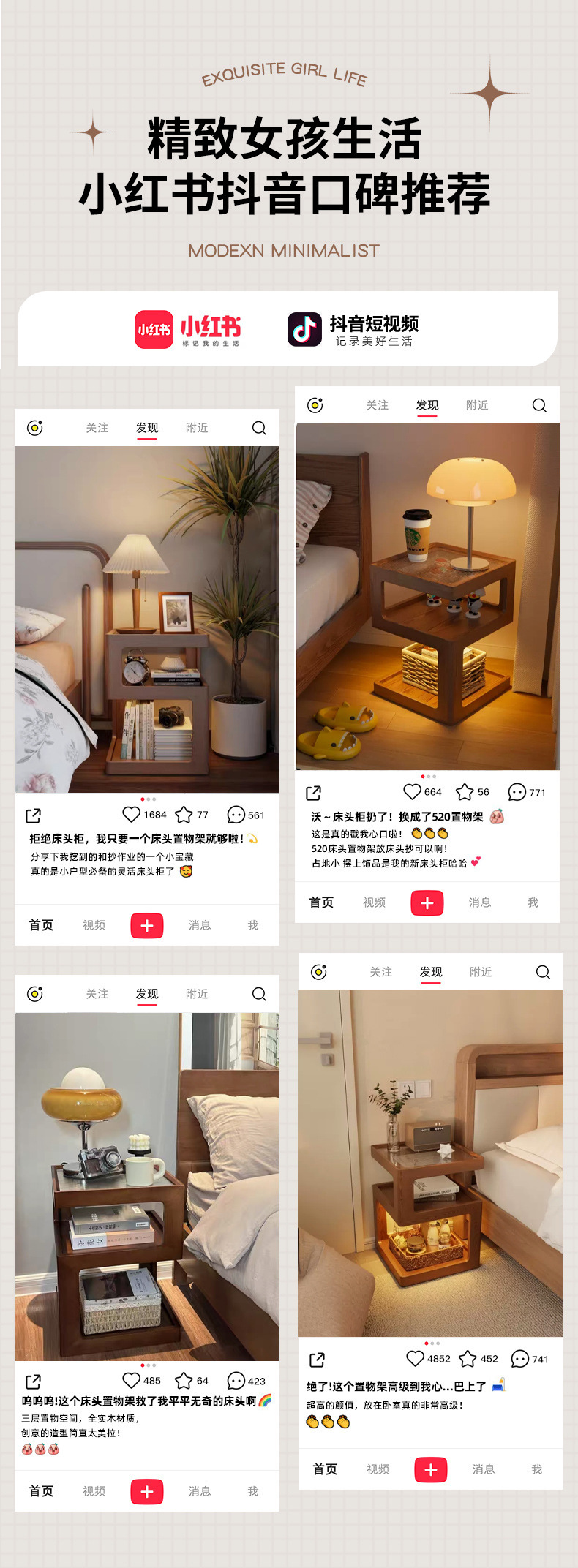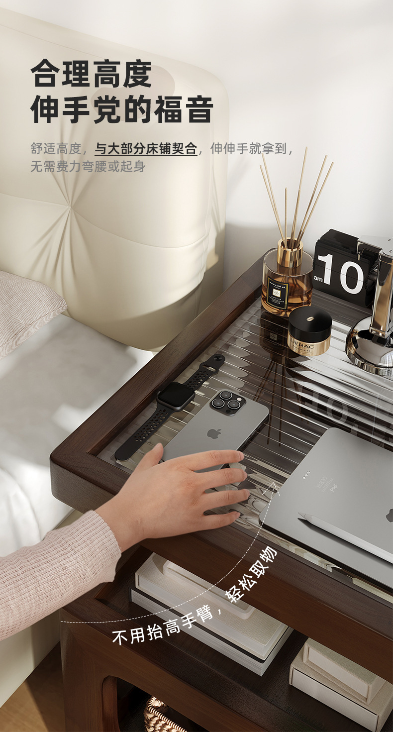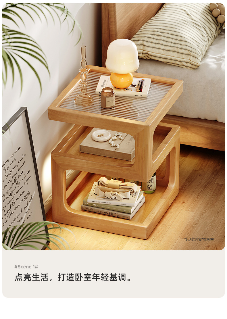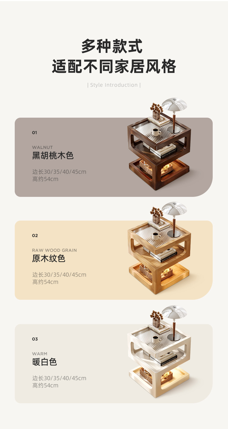 中古风床头小边几创意迷你全实木床头柜置物架黑胡桃色小茶几可爱