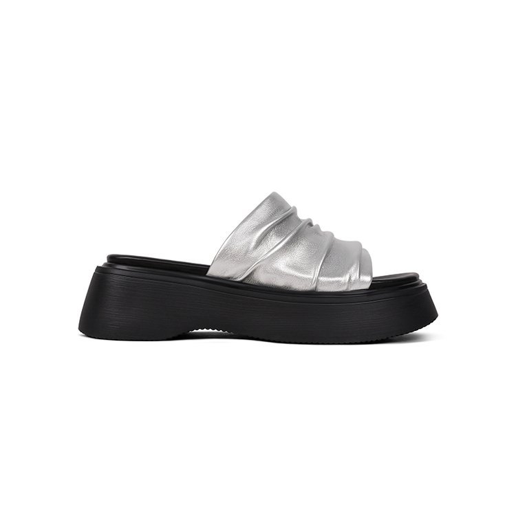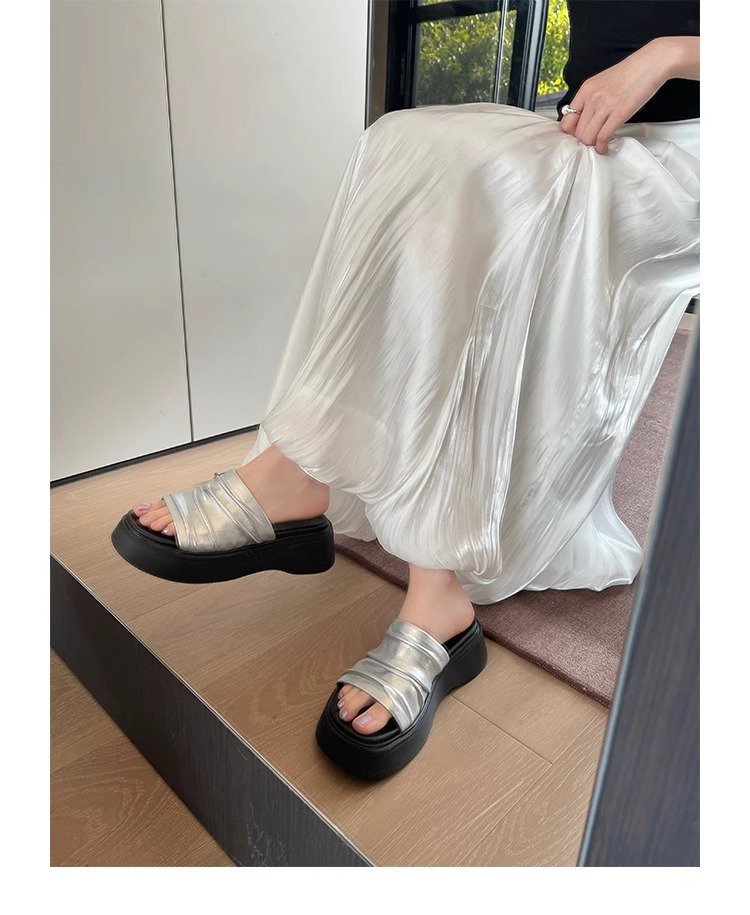 [아마노] 두꺼운 바닥 증가 플리츠 슬리퍼 여성 2025 아우터 신형 스커트 플랫폼 슬리퍼