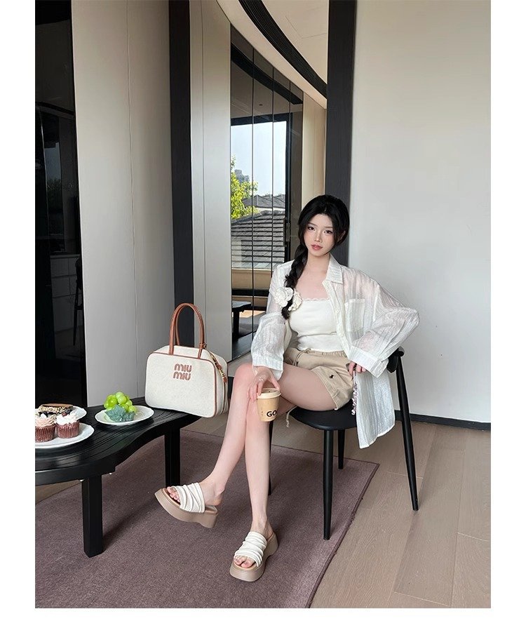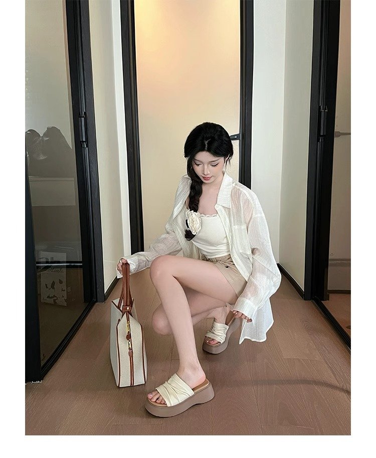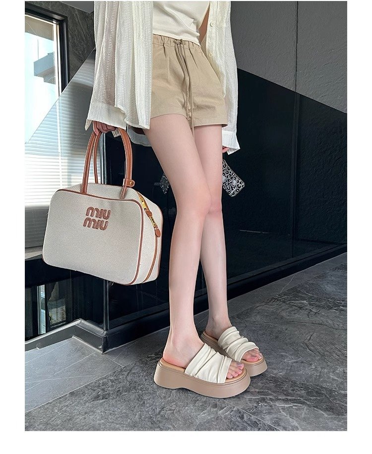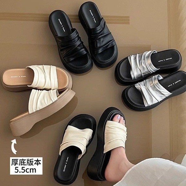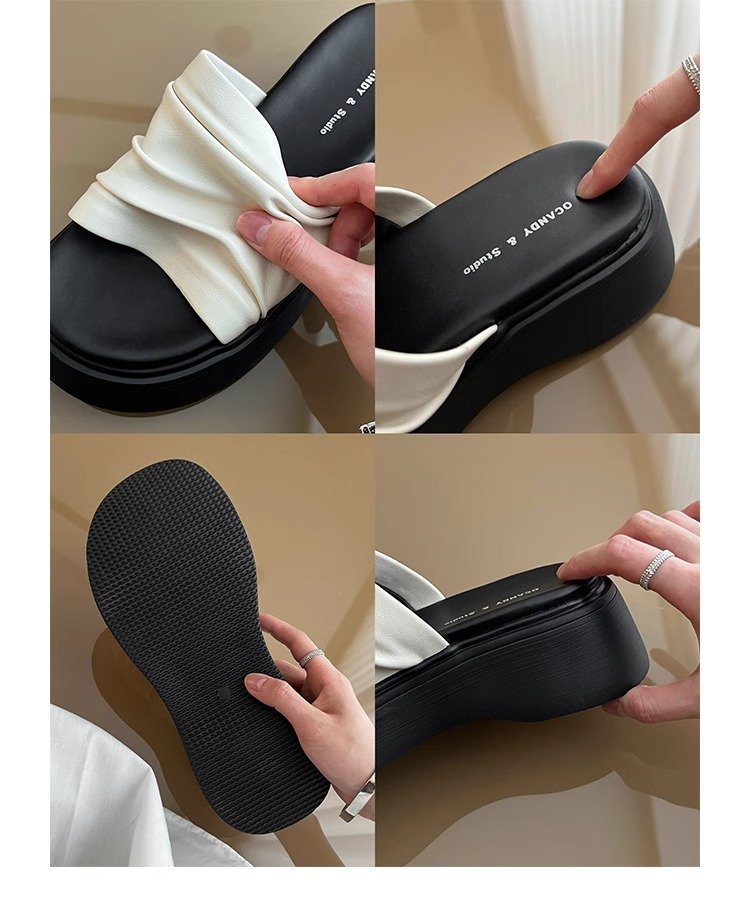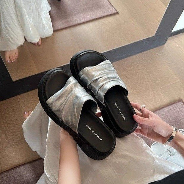 [아마노] 두꺼운 바닥 증가 플리츠 슬리퍼 여성 2025 아우터 신형 스커트 플랫폼 슬리퍼스토어 가기