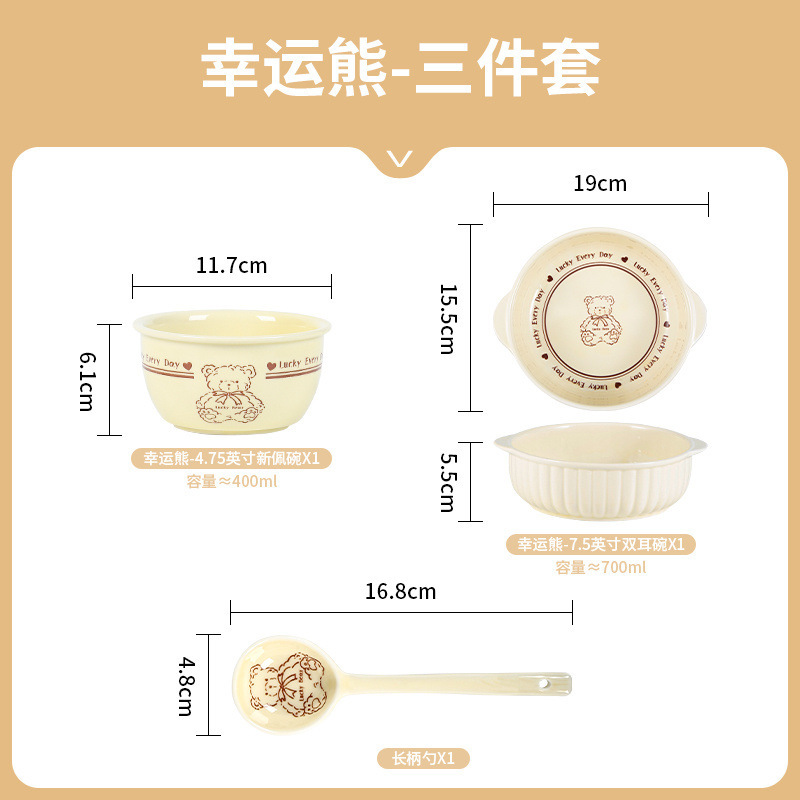 • (3종세트) 7.5inch 쌍귀그릇 + 밥그릇 + 스푼✓✦