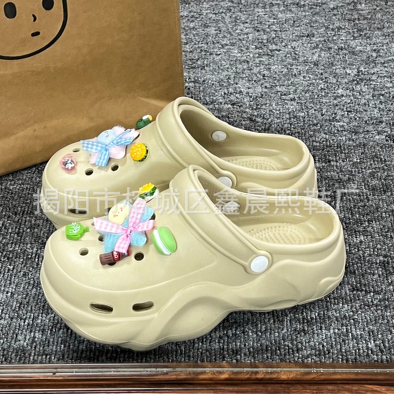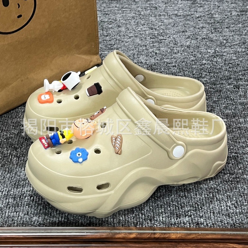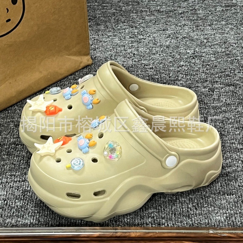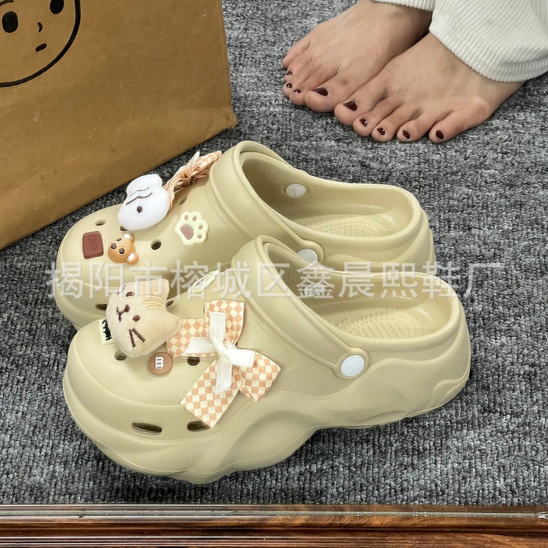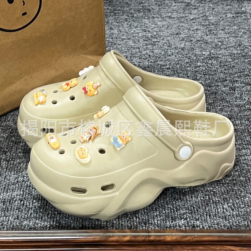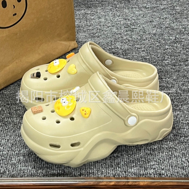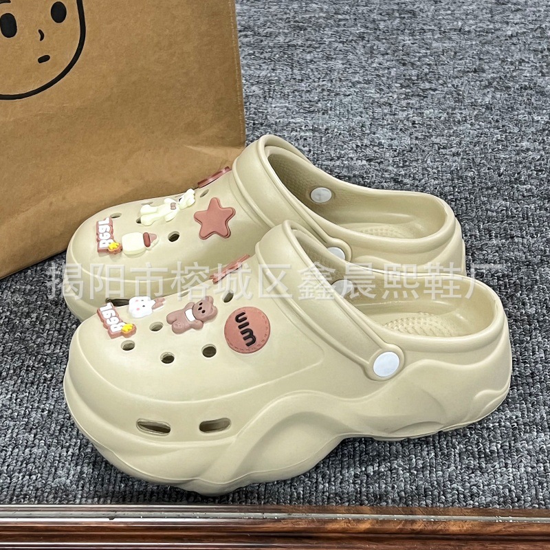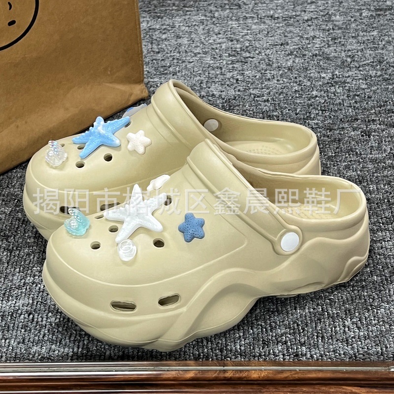 배설물 느낌의 구멍 신발 여성의 여름 착용 2025 새로운 미끄럼 방지 두껍게 증가 된 해변 바오터 슬리퍼 도매스토어 가기