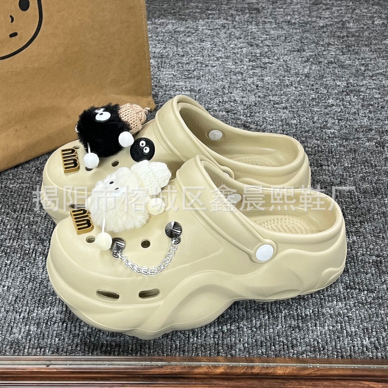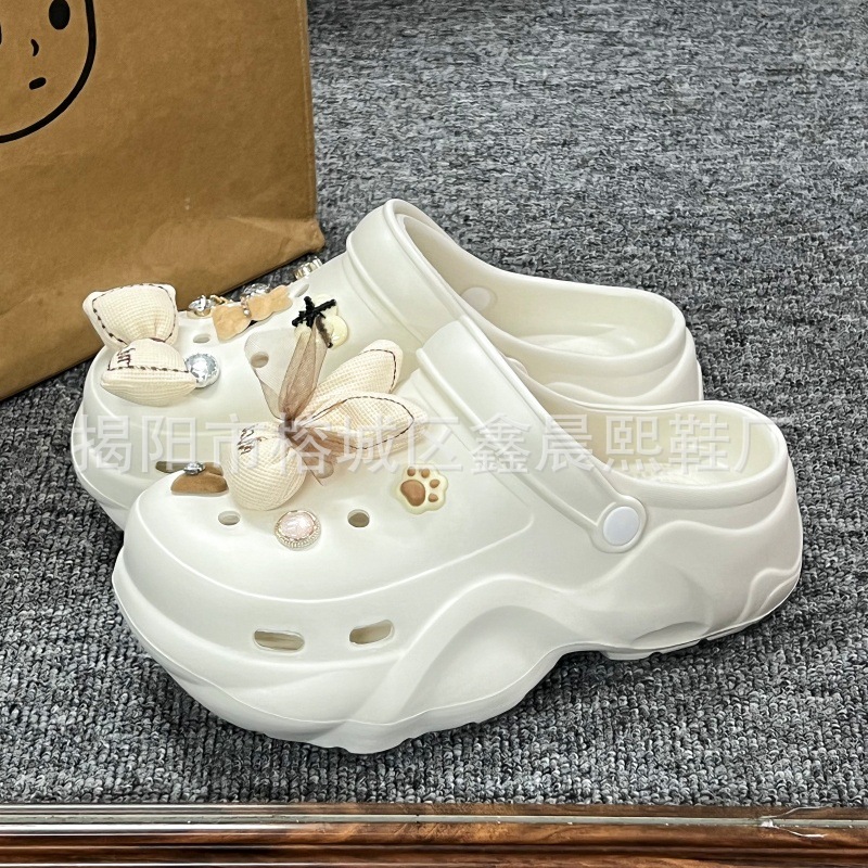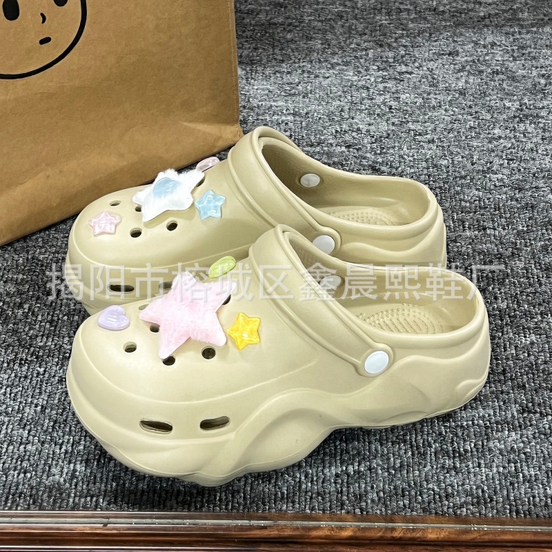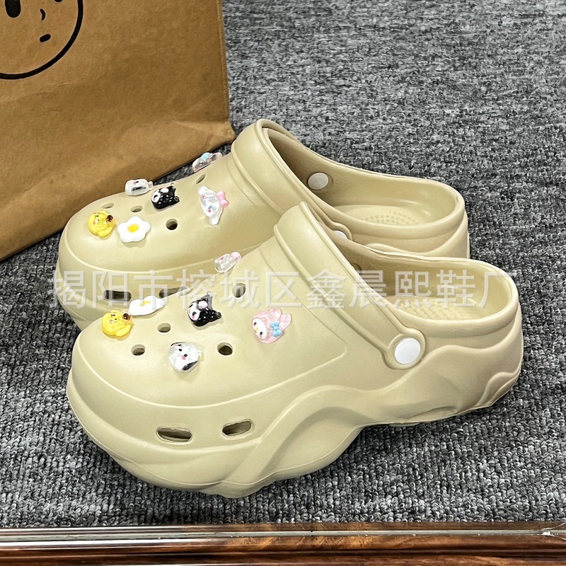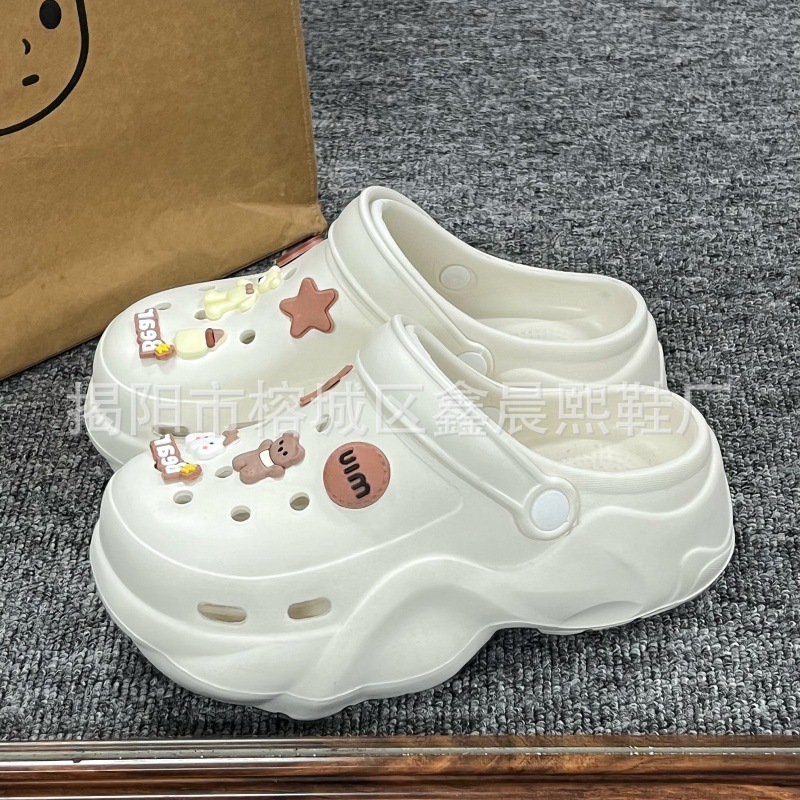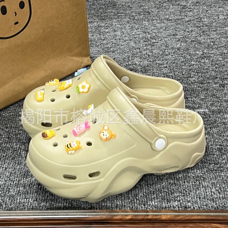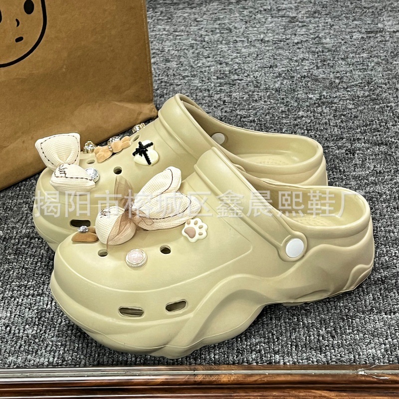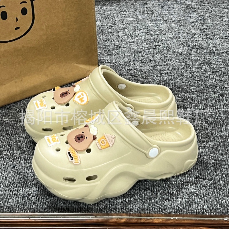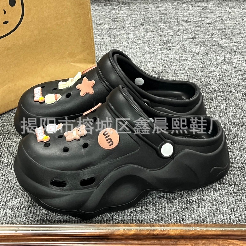 배설물 느낌의 구멍 신발 여성의 여름 착용 2025 새로운 미끄럼 방지 두껍게 증가 된 해변 바오터 슬리퍼 도매스토어 가기