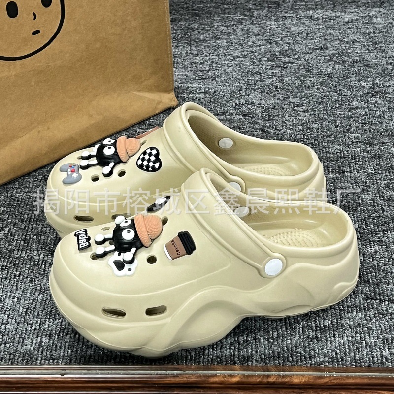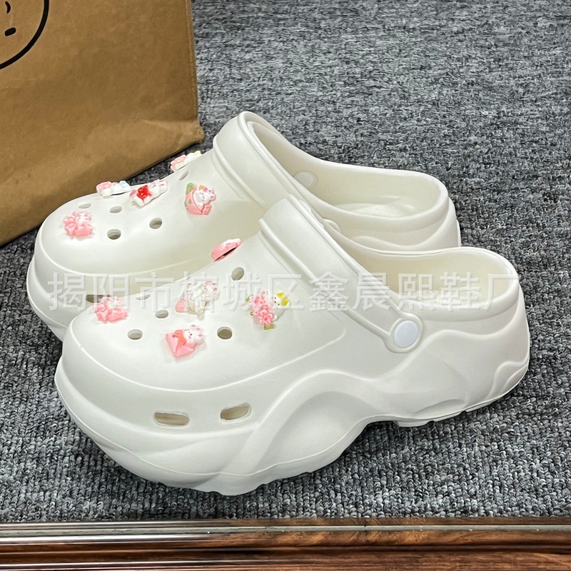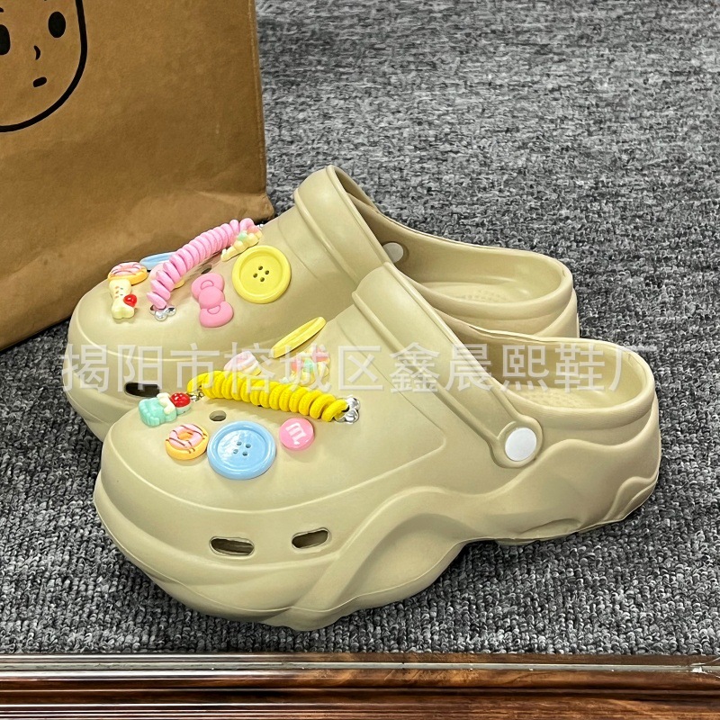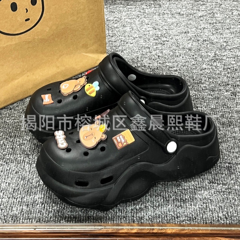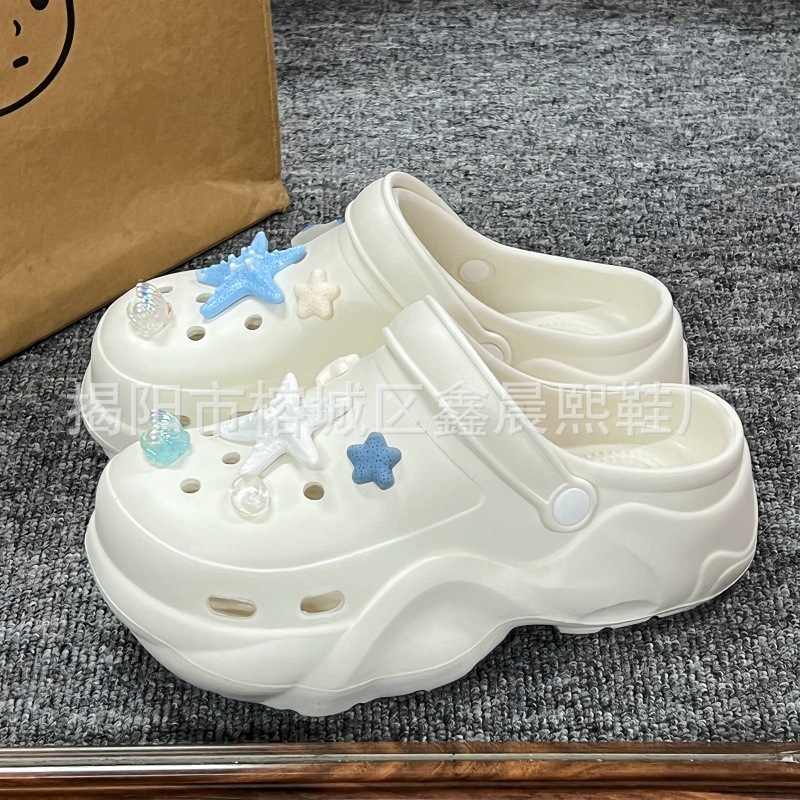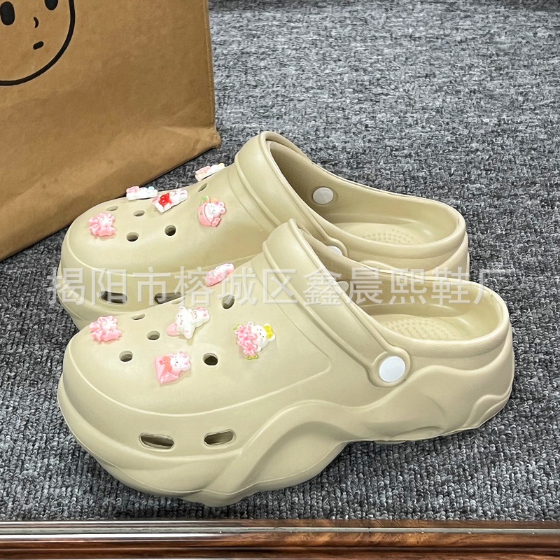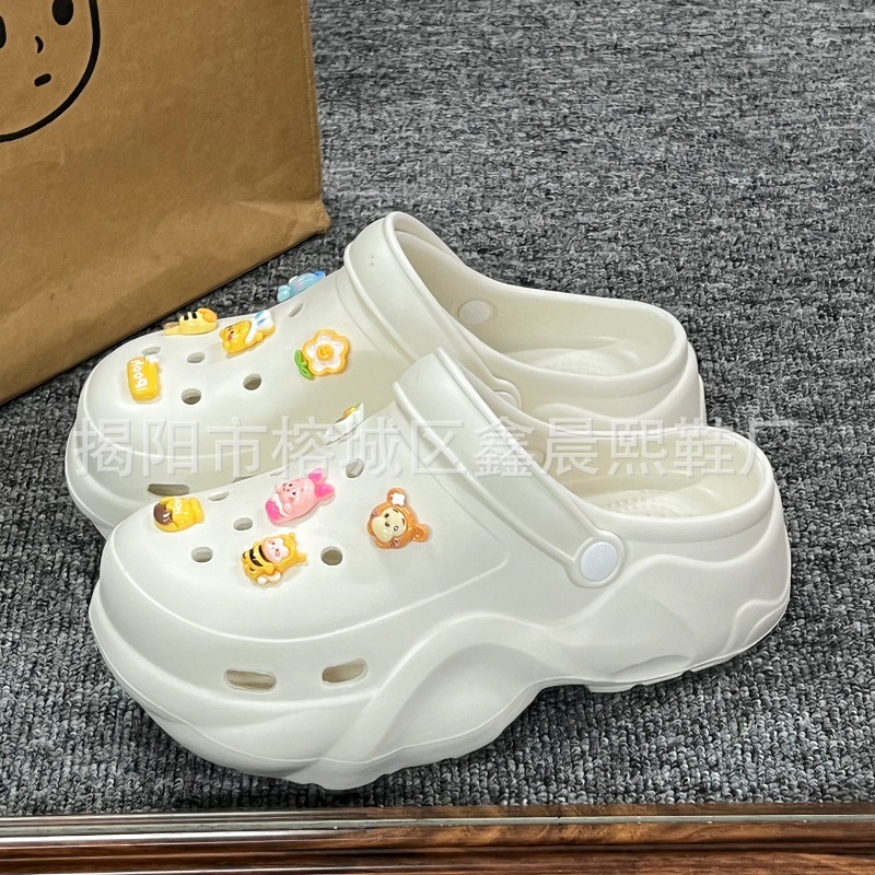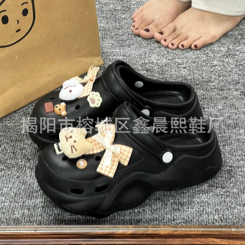 배설물 느낌의 구멍 신발 여성의 여름 착용 2025 새로운 미끄럼 방지 두껍게 증가 된 해변 바오터 슬리퍼 도매스토어 가기
