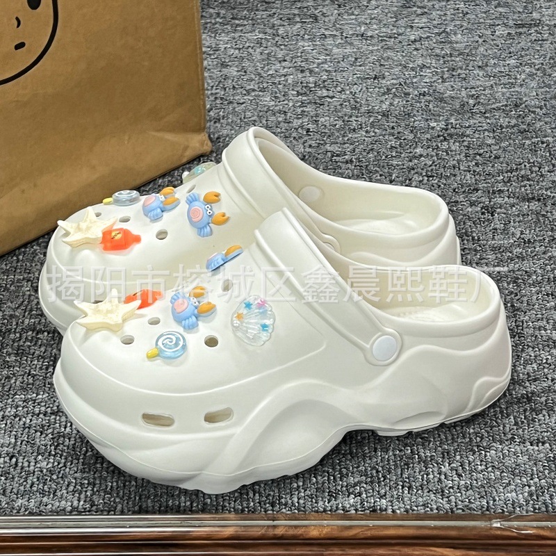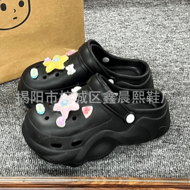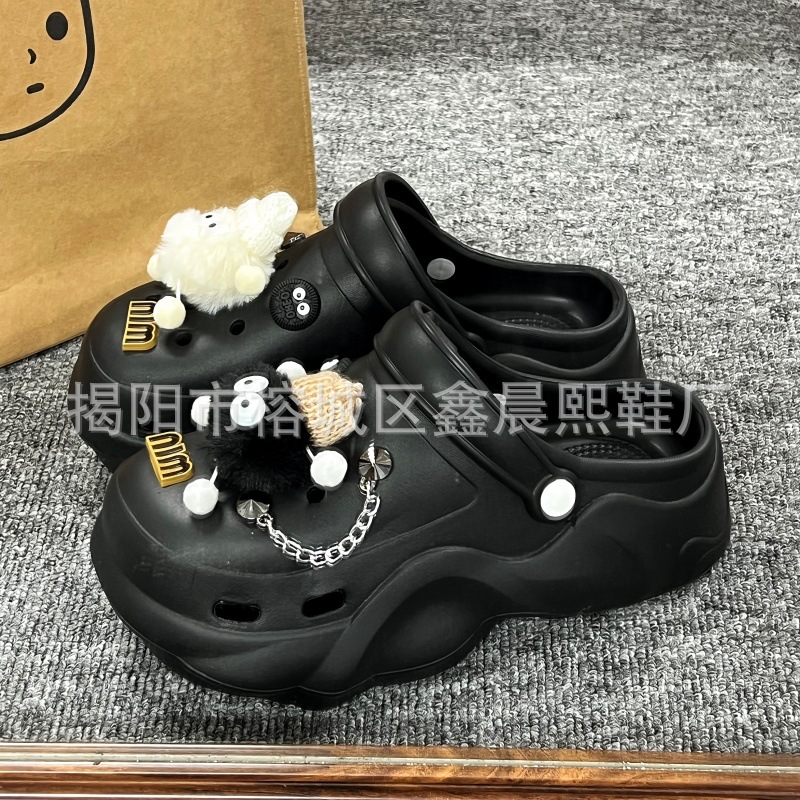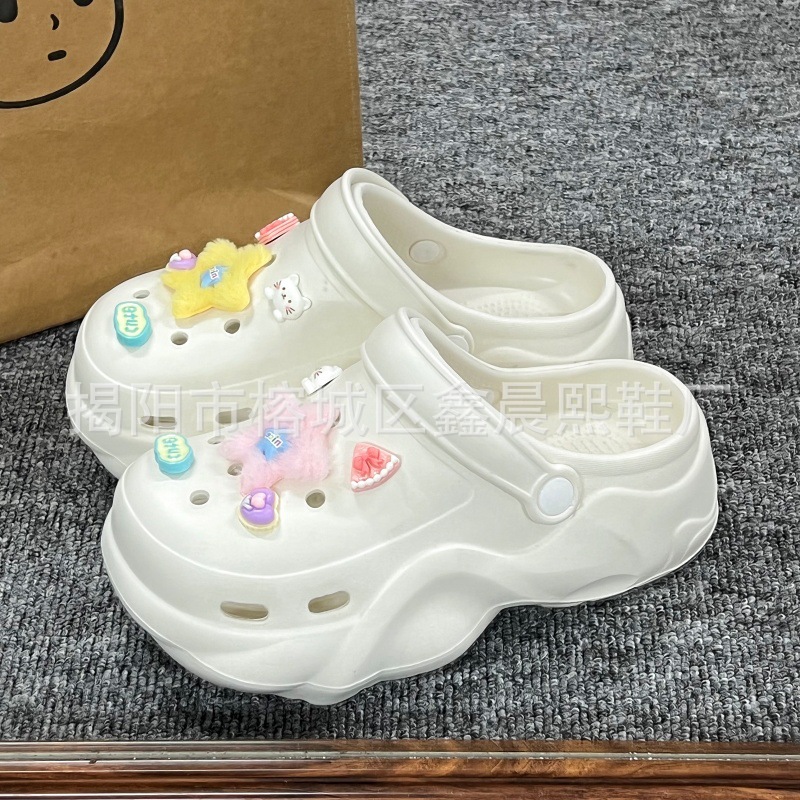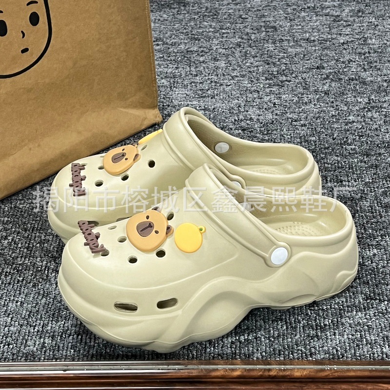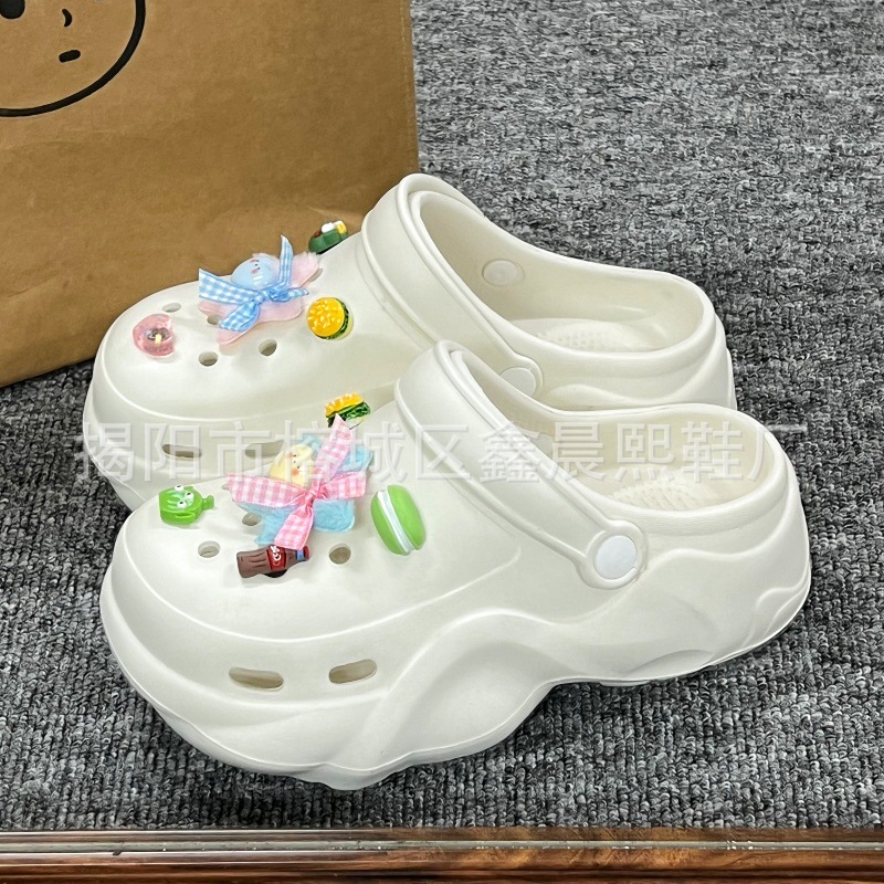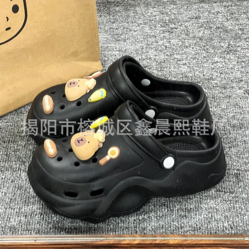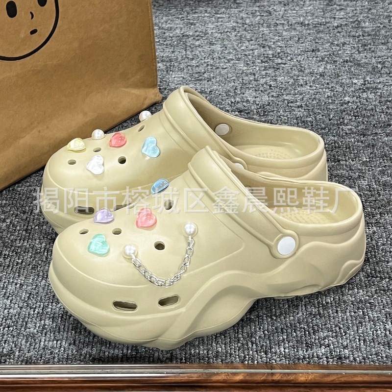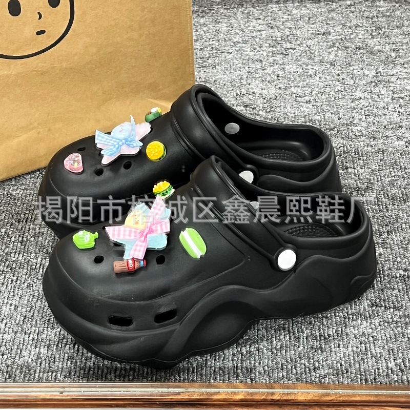 배설물 느낌의 구멍 신발 여성의 여름 착용 2025 새로운 미끄럼 방지 두껍게 증가 된 해변 바오터 슬리퍼 도매스토어 가기