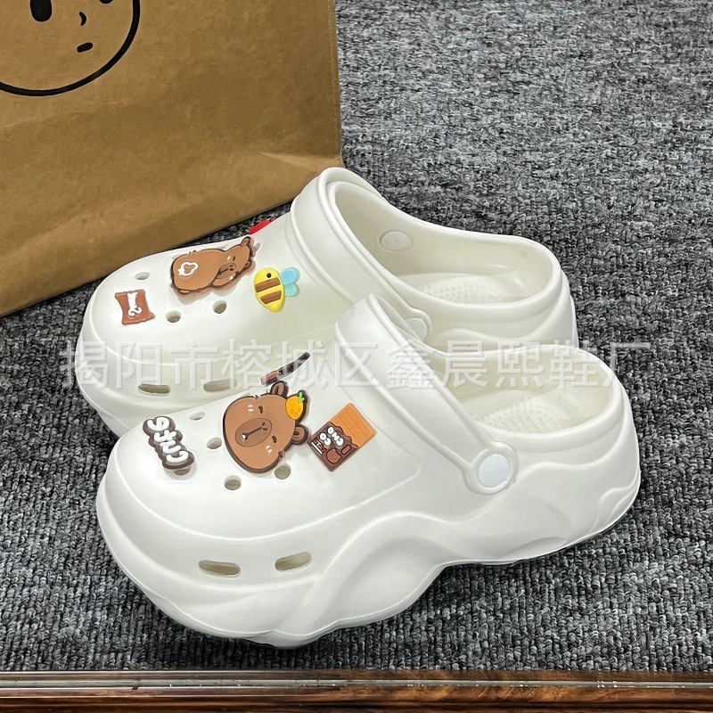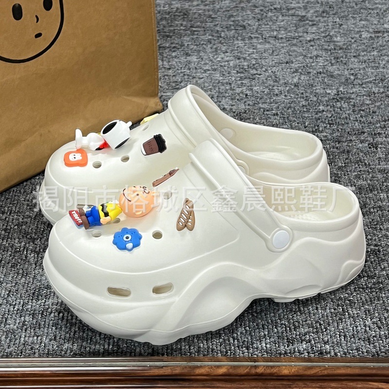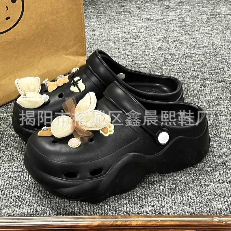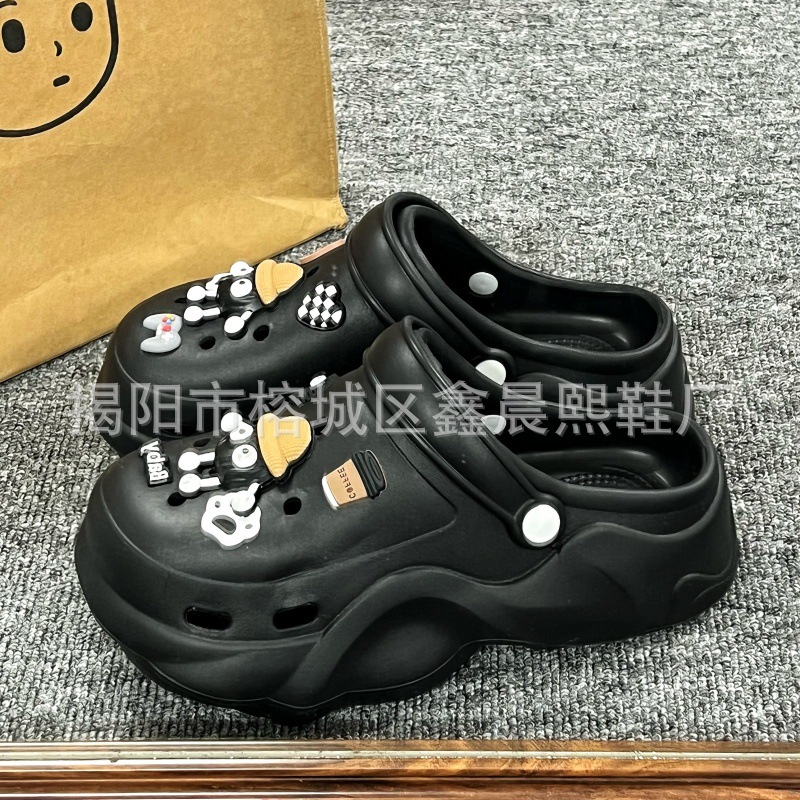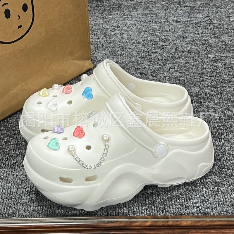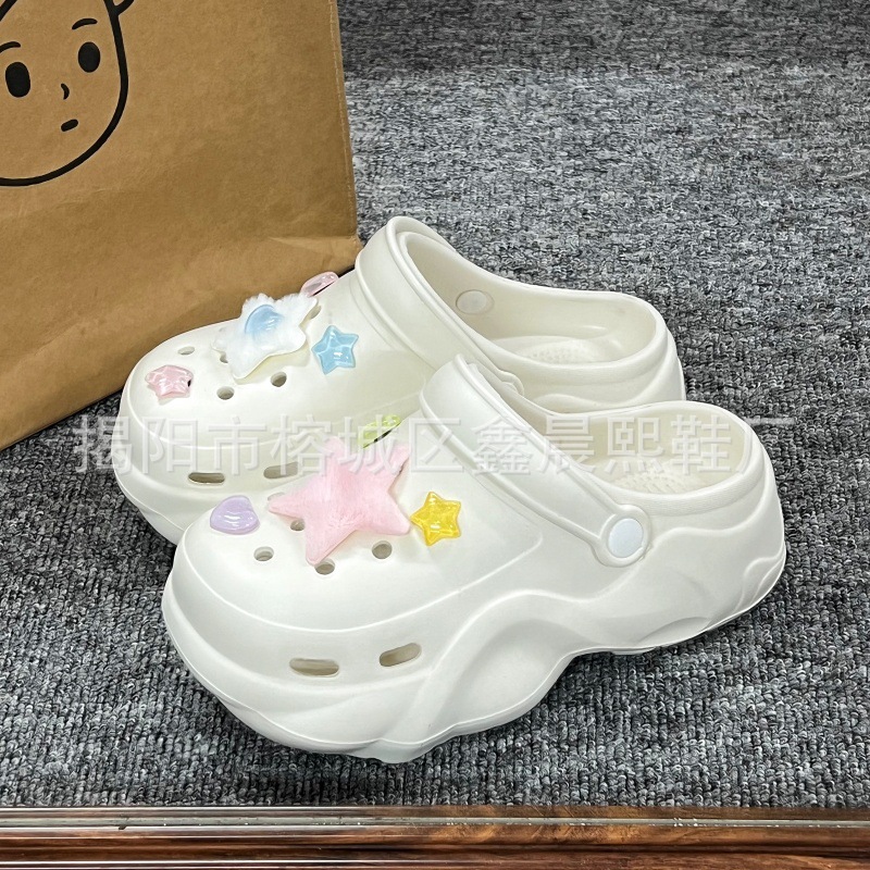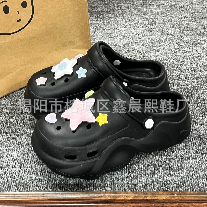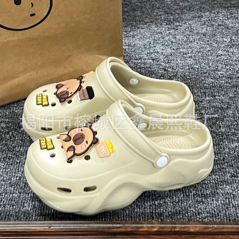 배설물 느낌의 구멍 신발 여성의 여름 착용 2025 새로운 미끄럼 방지 두껍게 증가 된 해변 바오터 슬리퍼 도매스토어 가기