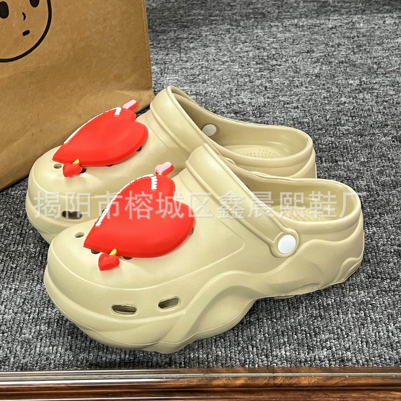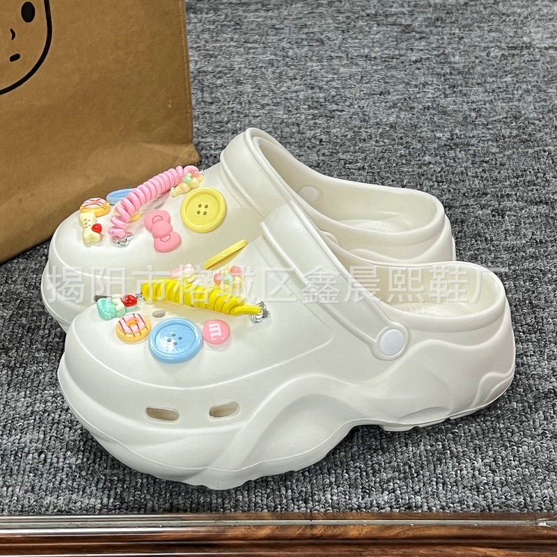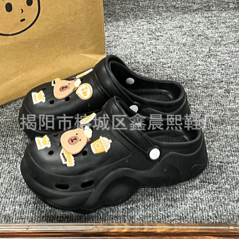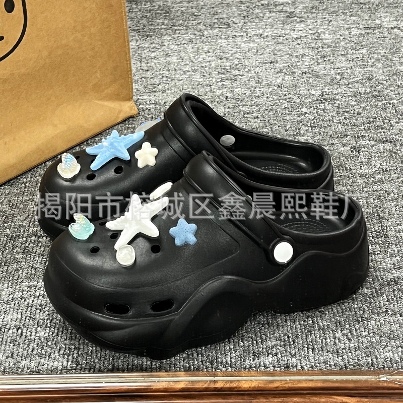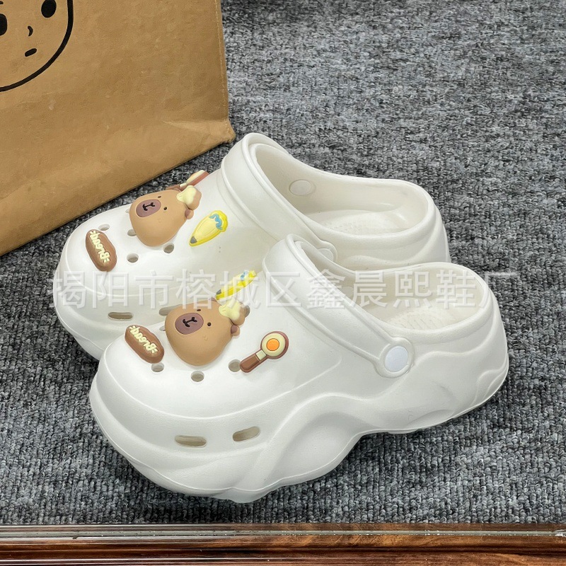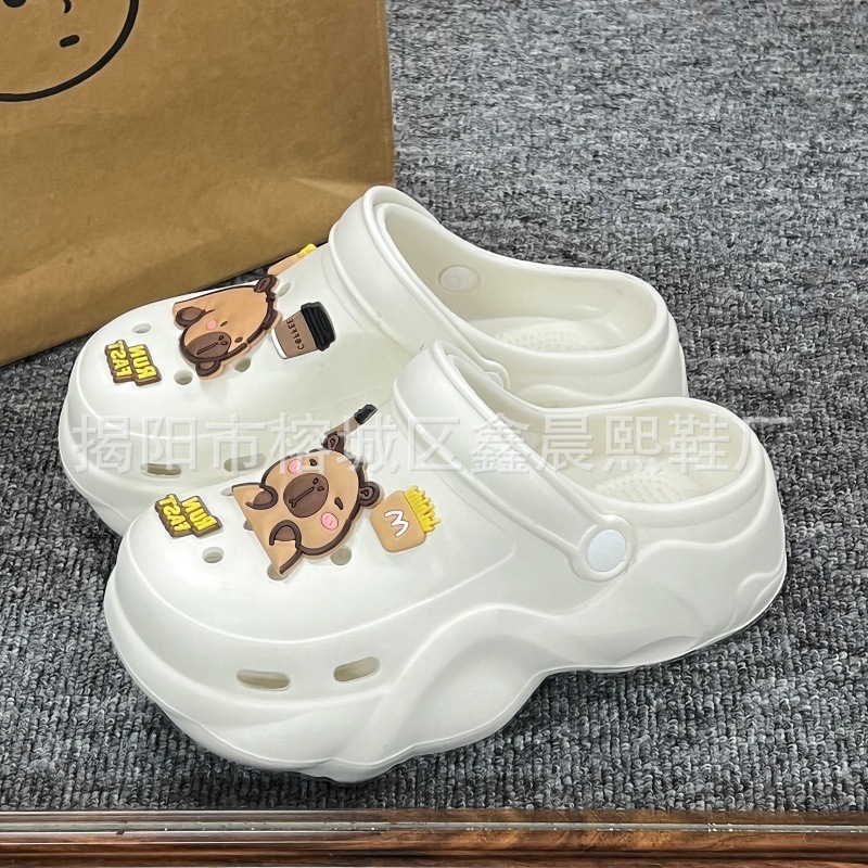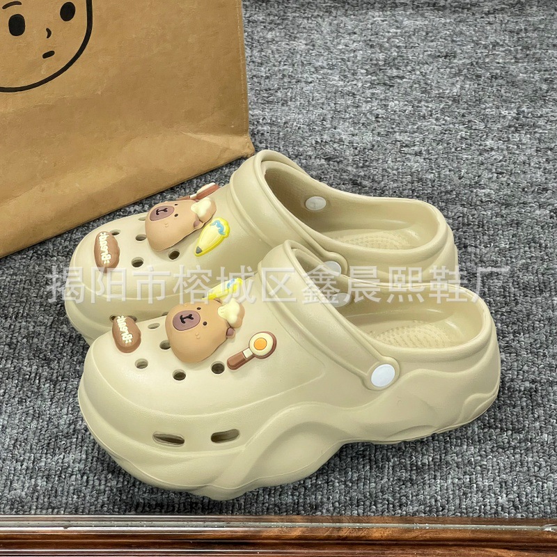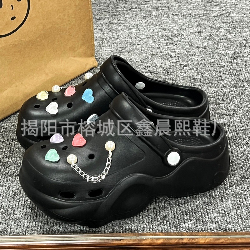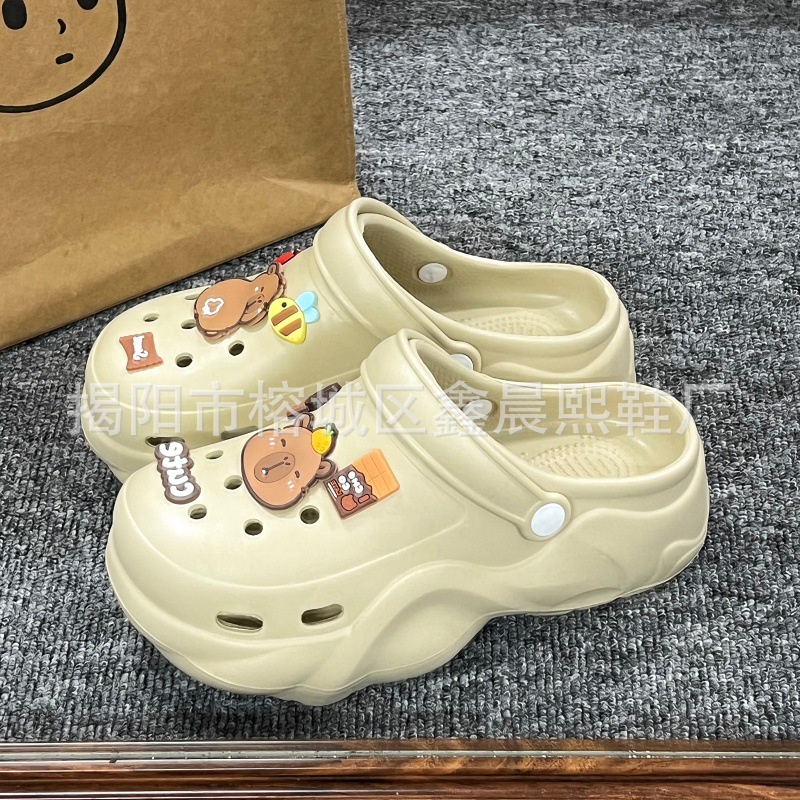 배설물 느낌의 구멍 신발 여성의 여름 착용 2025 새로운 미끄럼 방지 두껍게 증가 된 해변 바오터 슬리퍼 도매스토어 가기