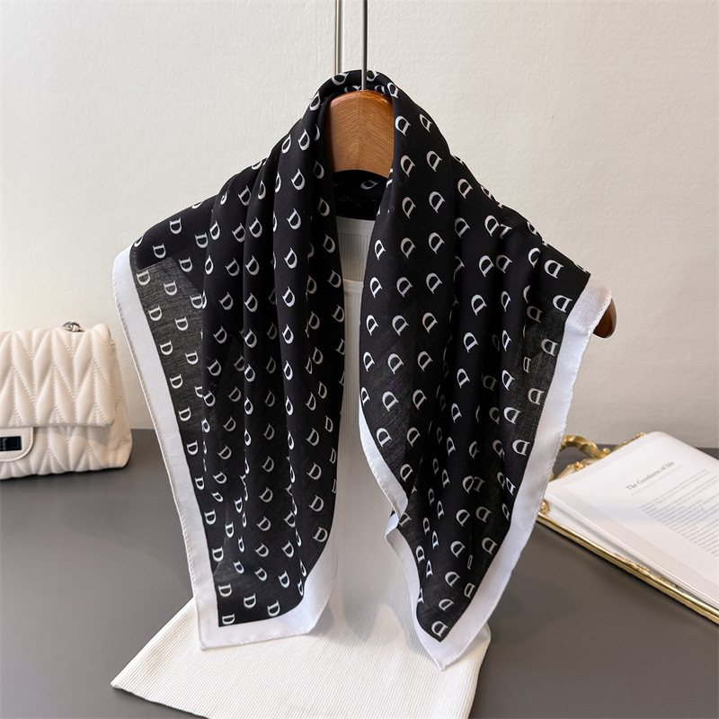 심플한 영어 헤링본 패턴 면과 린넨 느낌의 작은 사각 스카프 모조 벨벳 스카프 숄 자외선 차단 스카프 여성 스카프