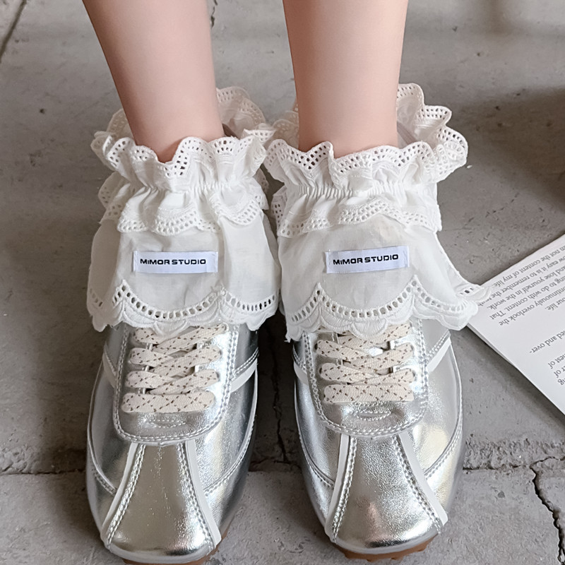 한국 디자인 양말 발레 스타일 스트랩 보우 레이스 스택 양말 여성용 흰색 발목 신발 커버 양말스토어 가기