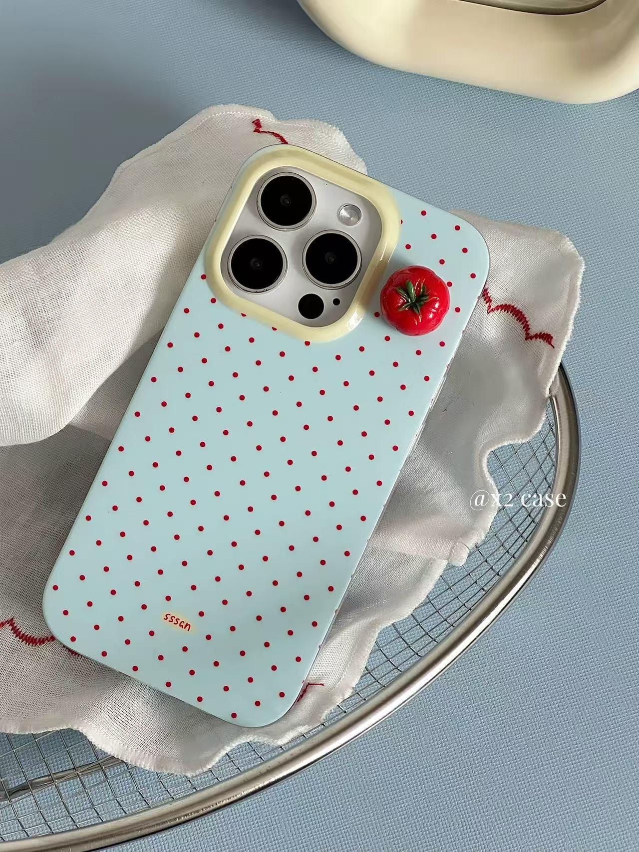 재미 귀여운 3 차원 토마토 iphone16promax 애플 15 휴대 전화 케이스 14 여성을위한 간단한 웨이브 도트