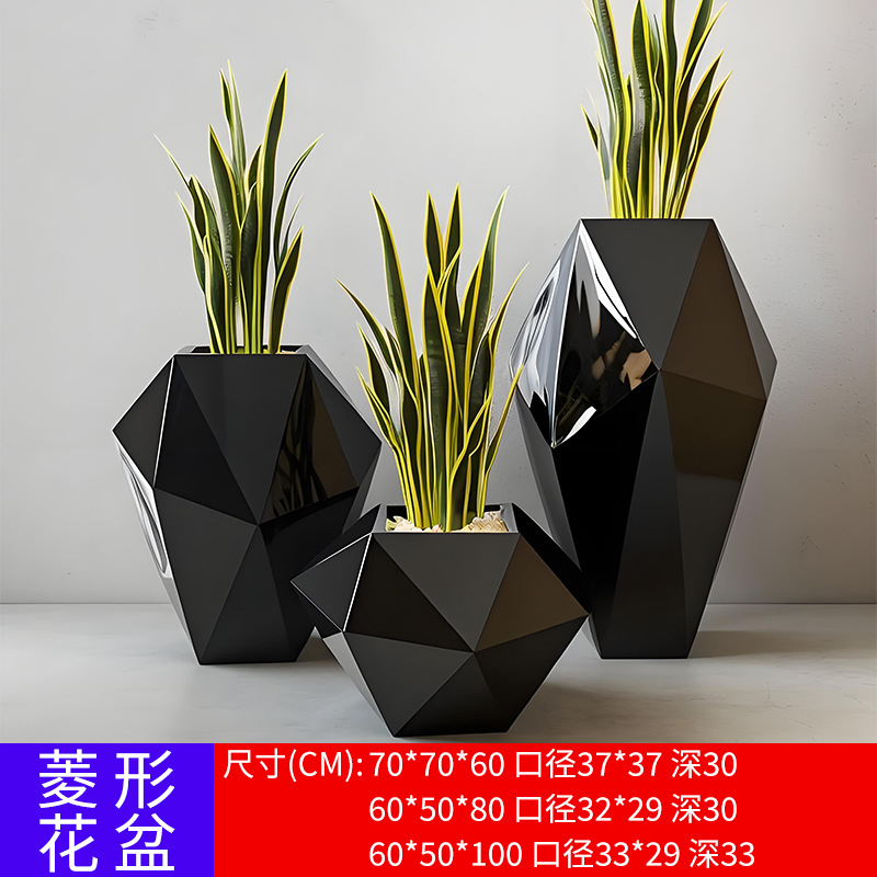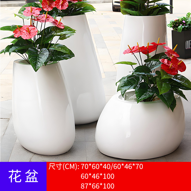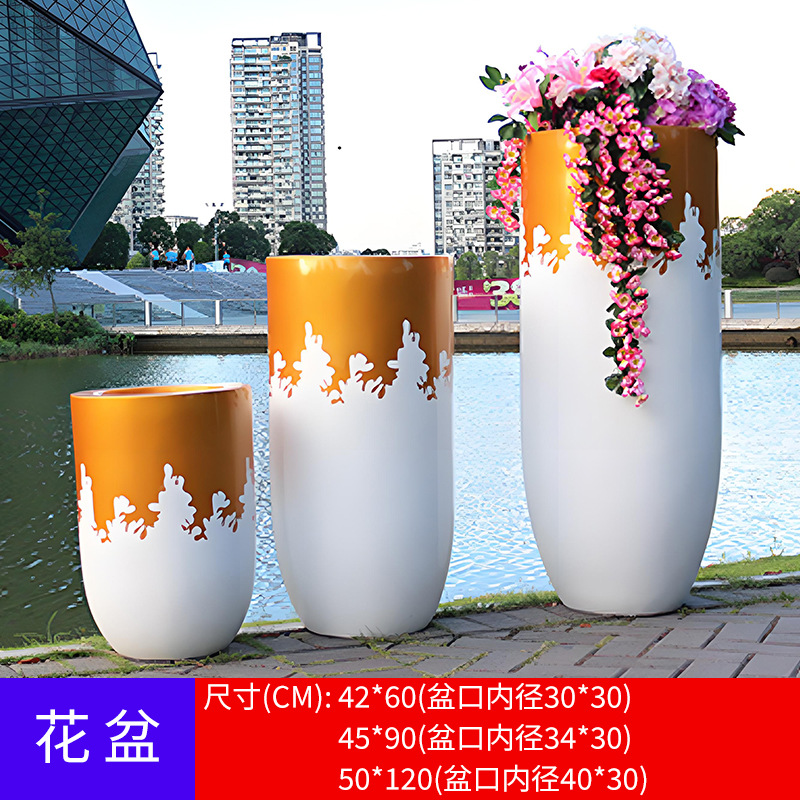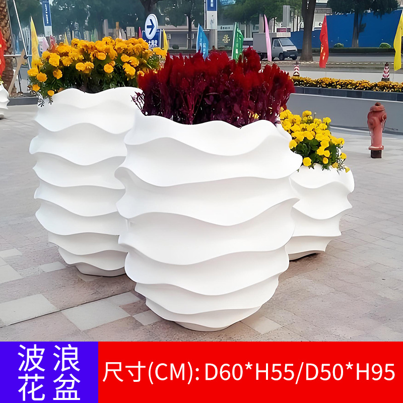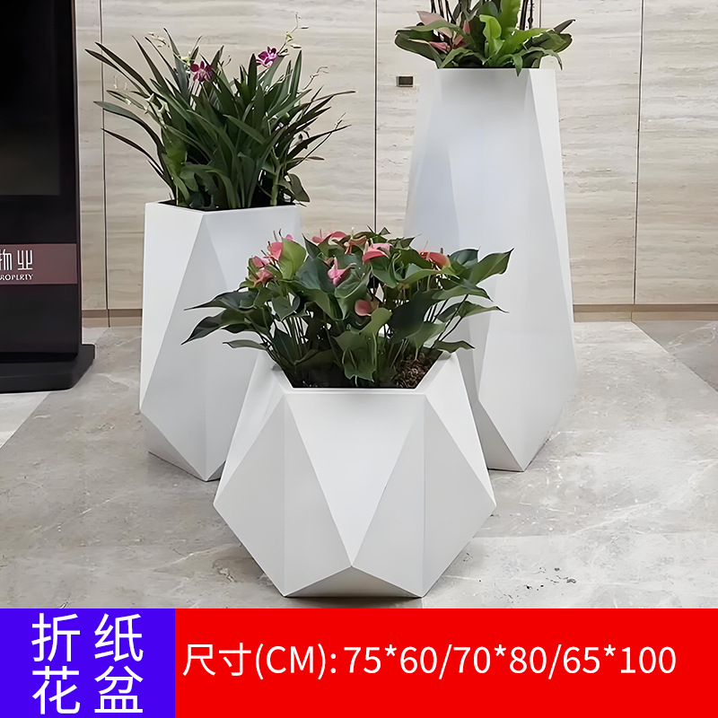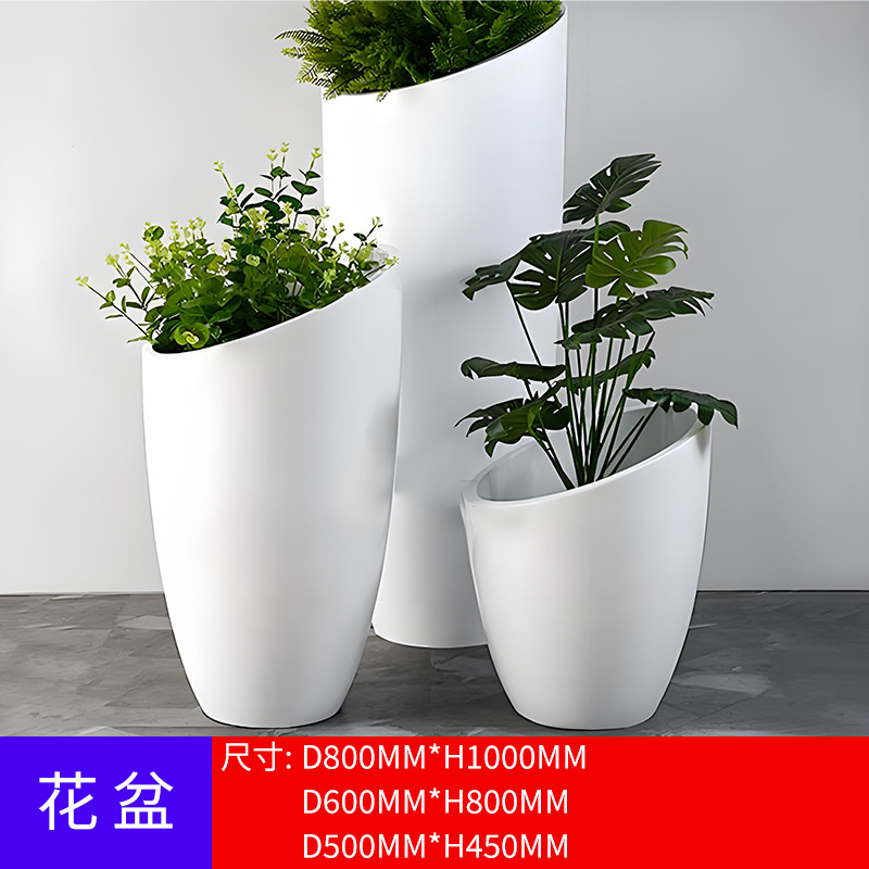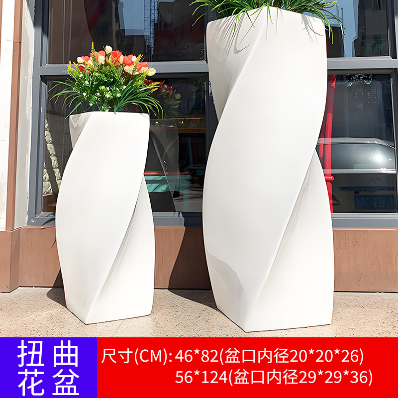 유리 섬유 강화 플라스틱 꽃 냄비 쇼핑몰 meichen 창조적 인 조합 호텔 골판지 베벨 꽃 도자기 대구경 야외 녹색 심기 꽃 상자스토어 가기