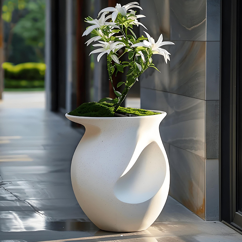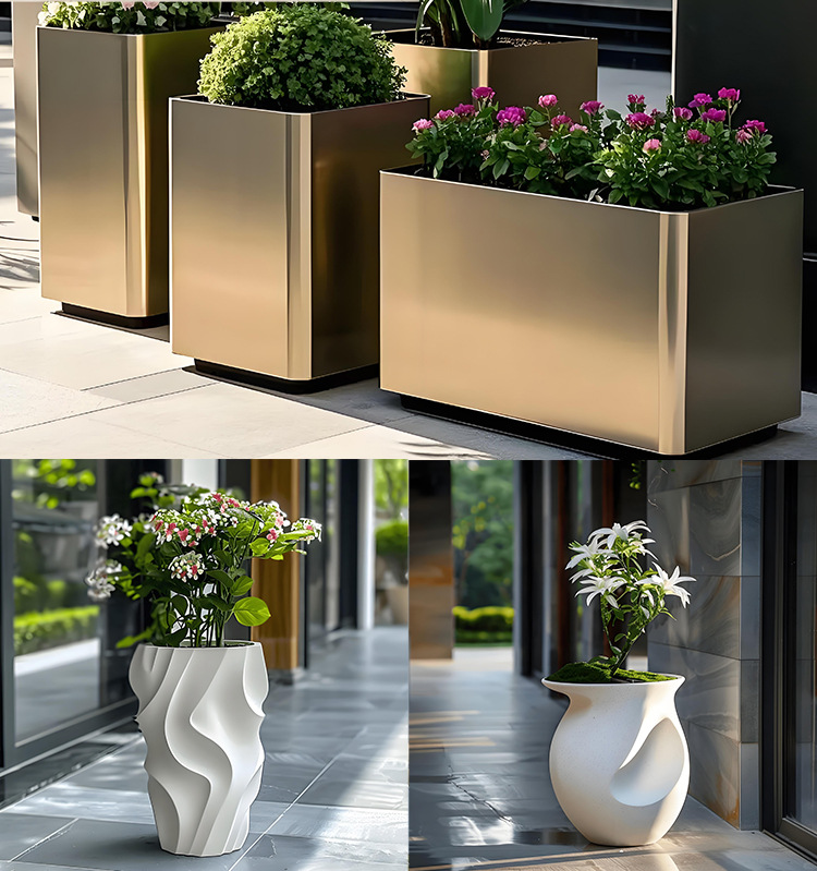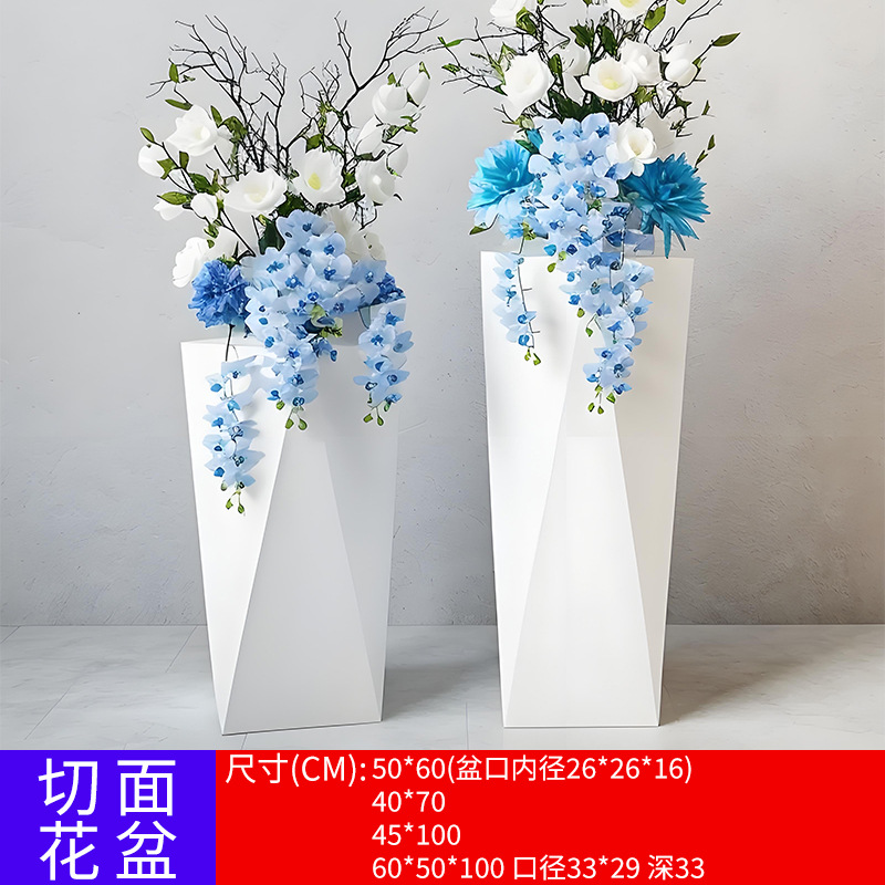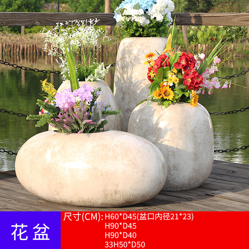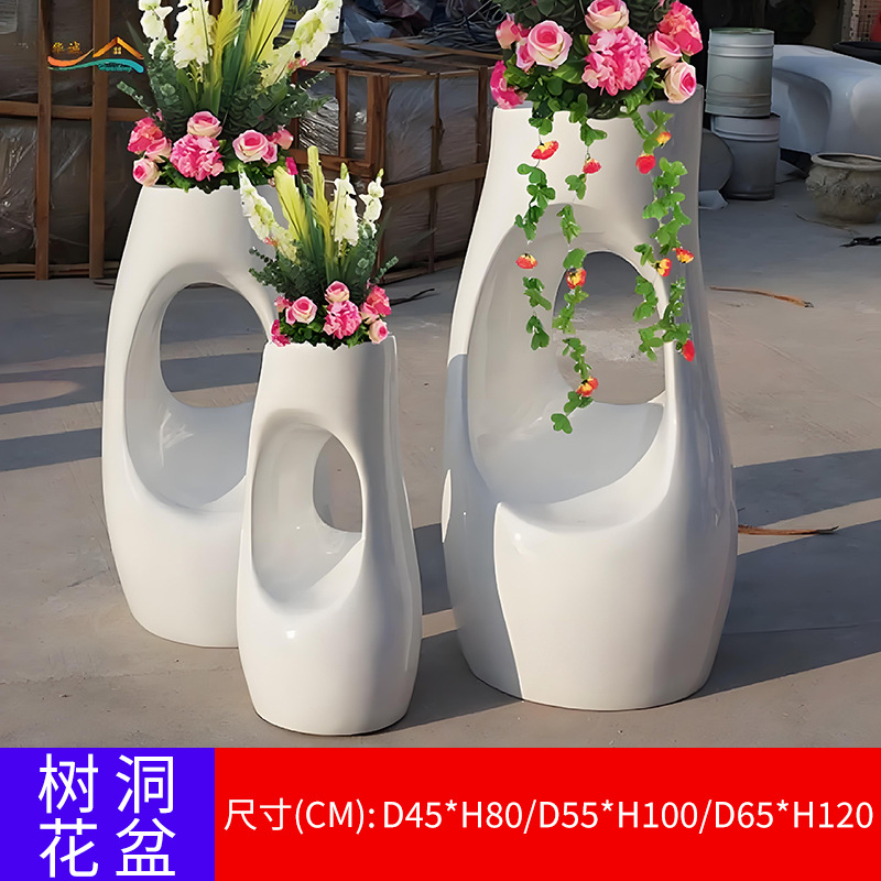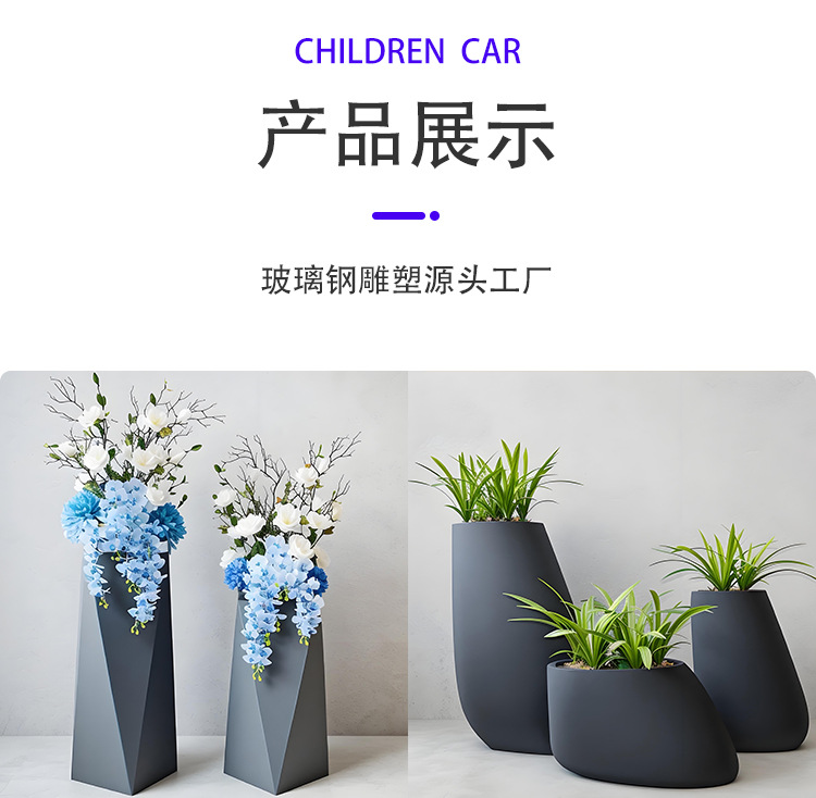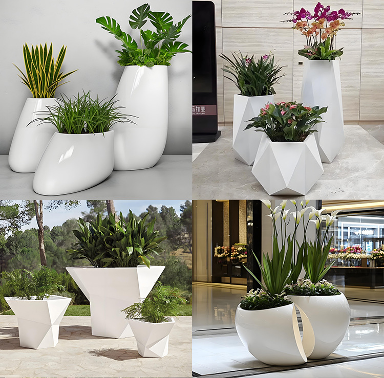 유리 섬유 강화 플라스틱 꽃 냄비 쇼핑몰 meichen 창조적 인 조합 호텔 골판지 베벨 꽃 도자기 대구경 야외 녹색 심기 꽃 상자스토어 가기