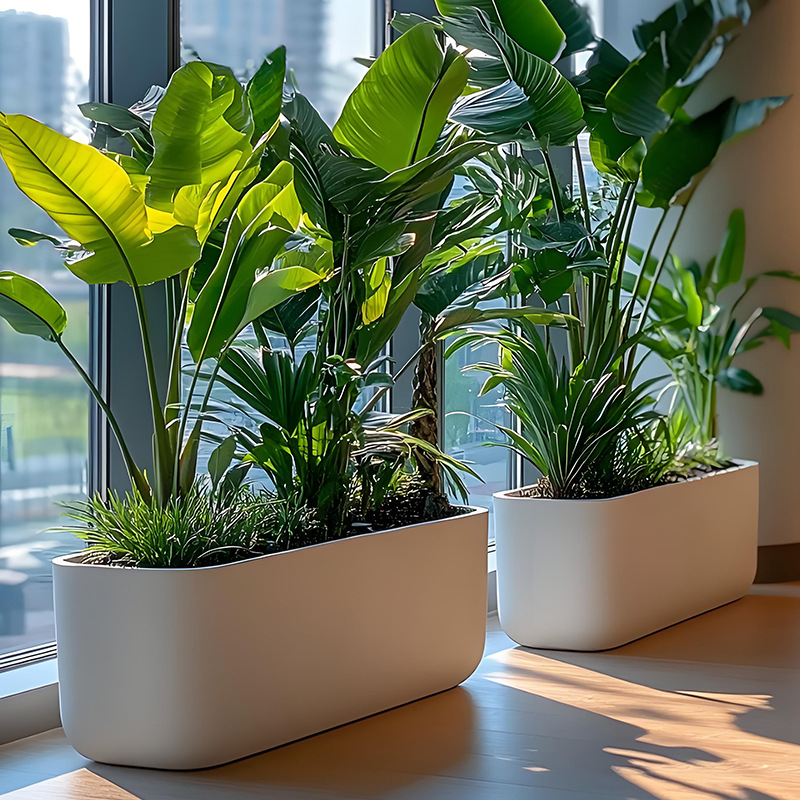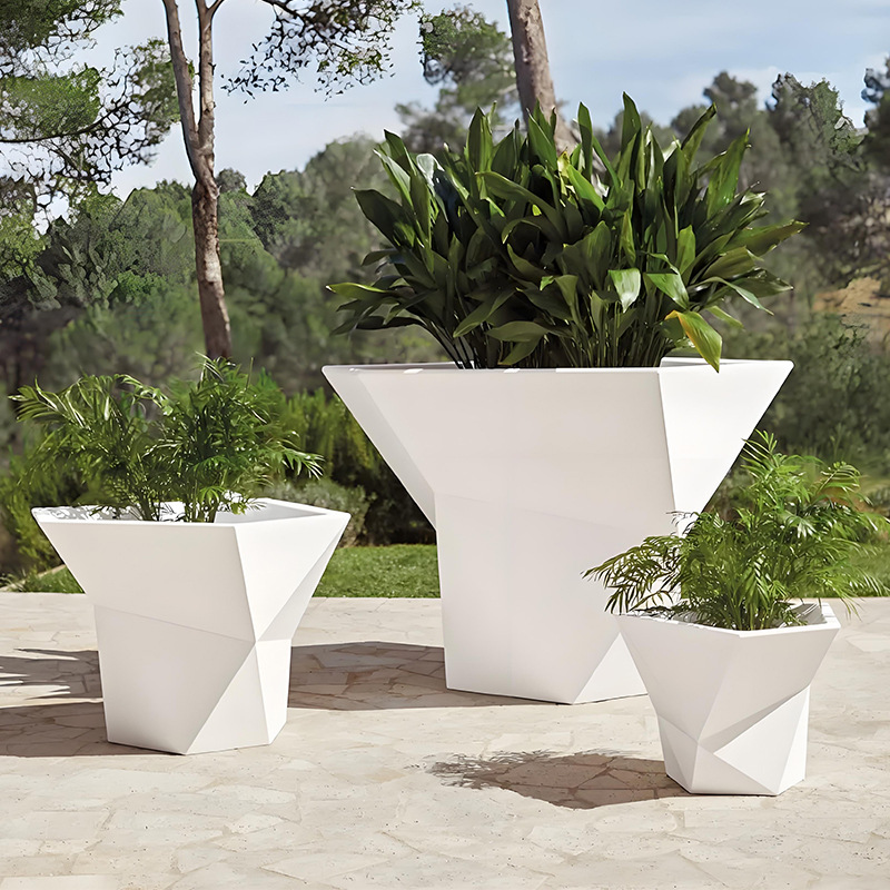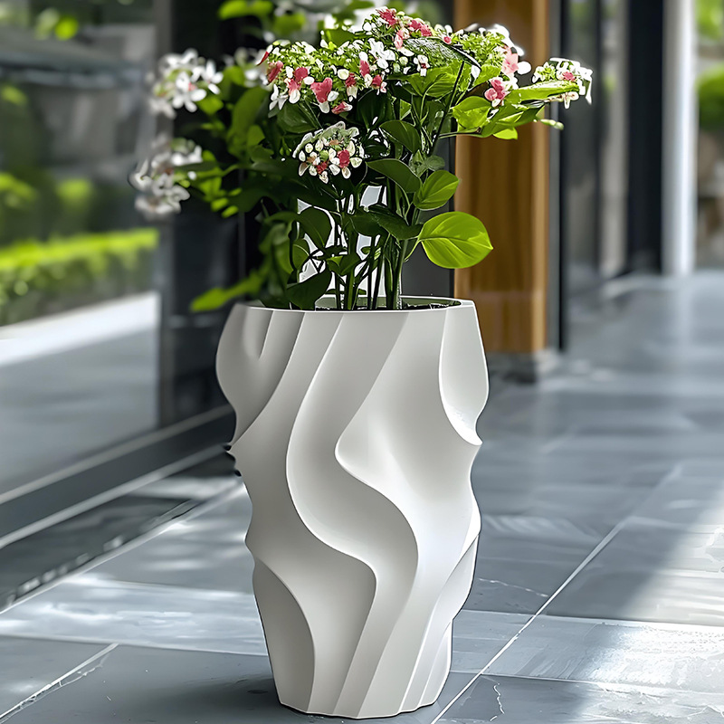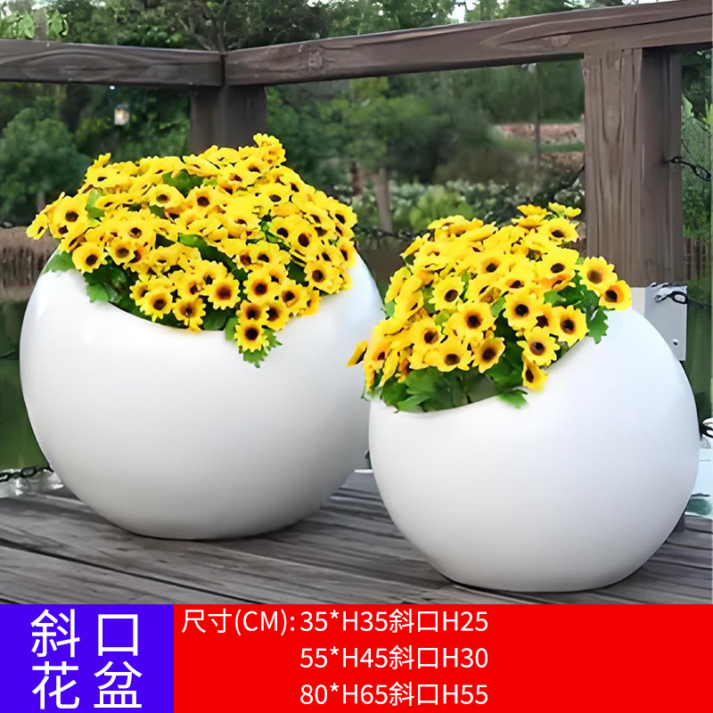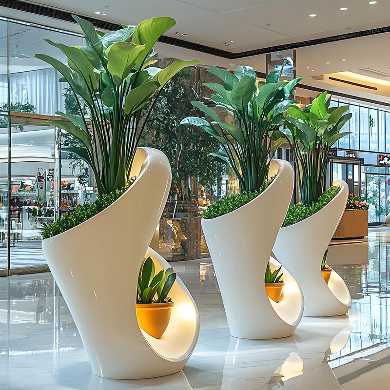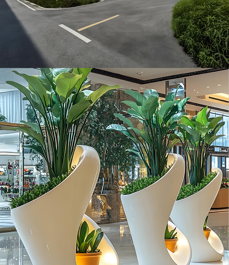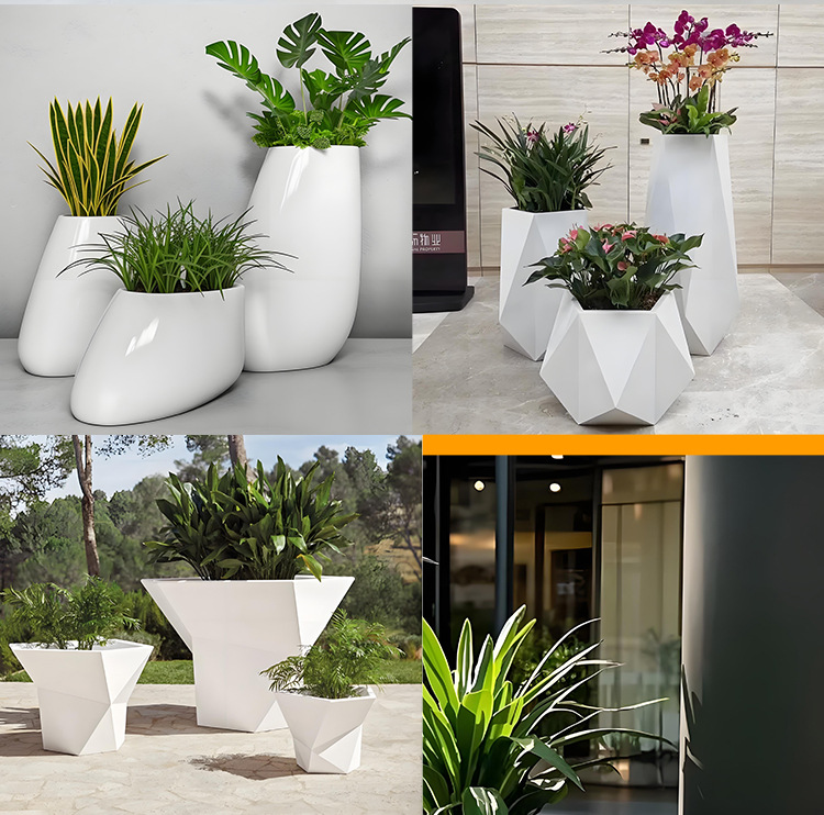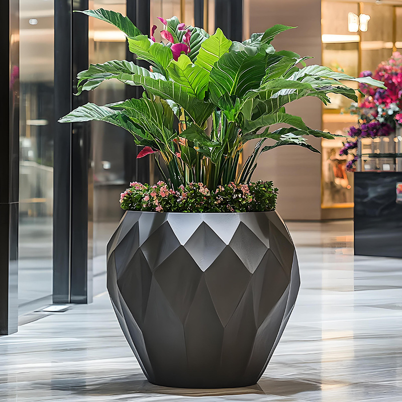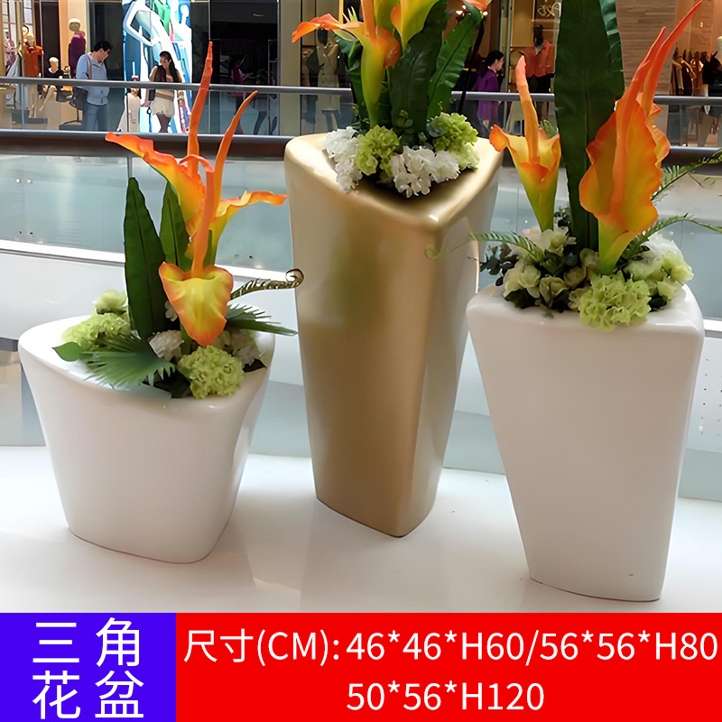 유리 섬유 강화 플라스틱 꽃 냄비 쇼핑몰 meichen 창조적 인 조합 호텔 골판지 베벨 꽃 도자기 대구경 야외 녹색 심기 꽃 상자