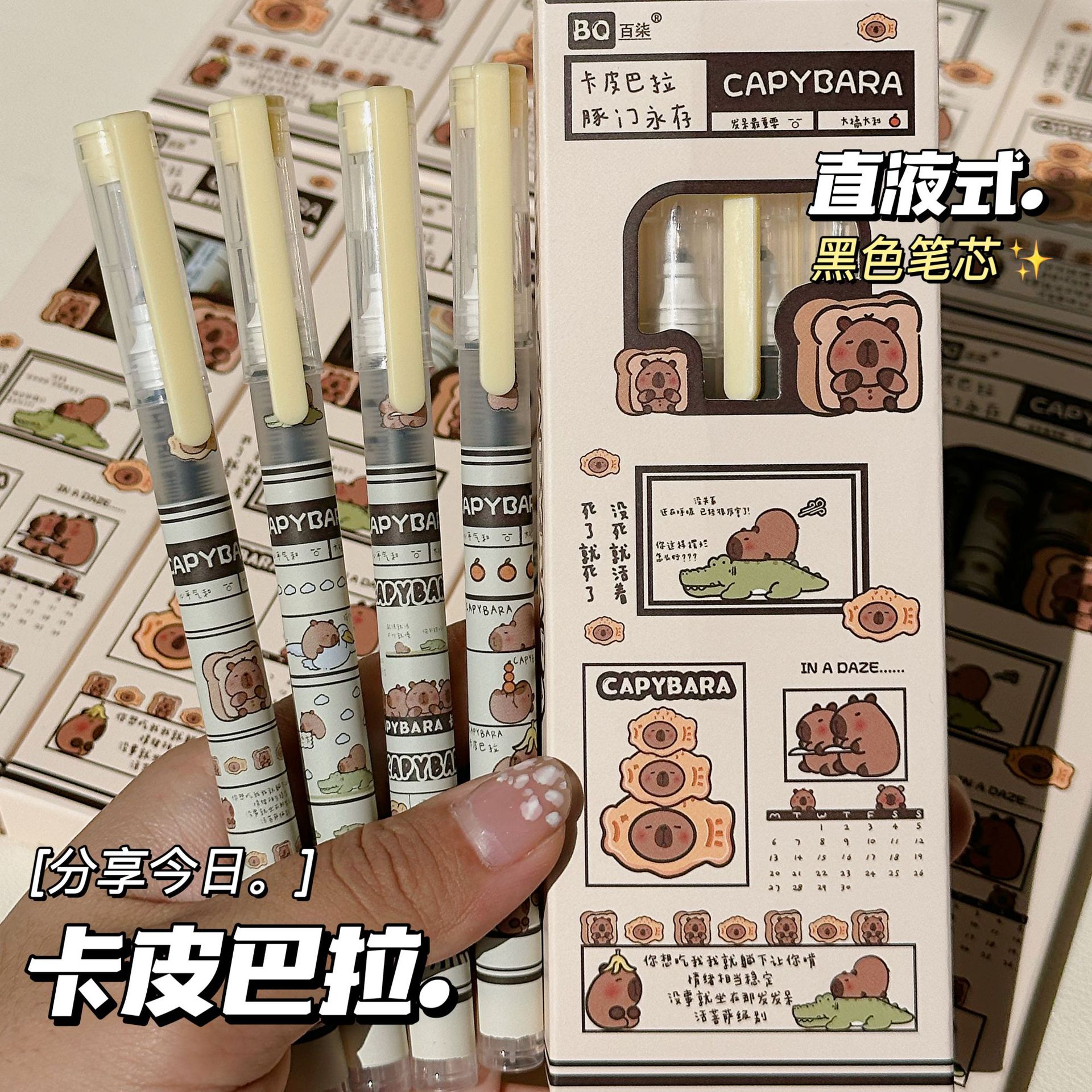 고급스러운 외모와 쓰기 쉬운 0.5 심플하고 부드러운 젤펜을 갖춘 학생 시험용 스트레이트 리퀴드 카피바라 만화 롤러 볼펜스토어 가기