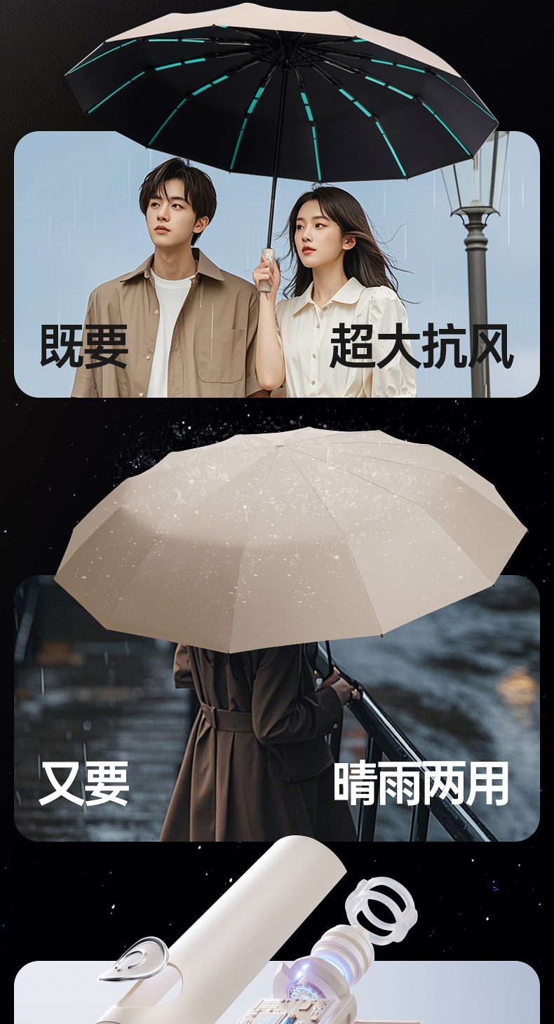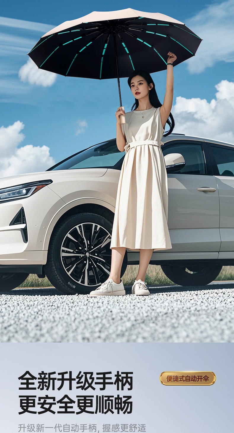 완전 자동 화창한 우산 초대형 접기 강화 바람 방지 두꺼운 태양 우산 남성과 여성을위한 햇빛