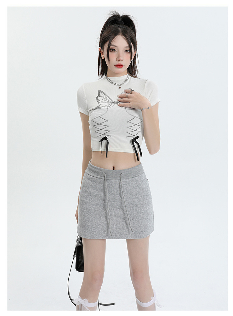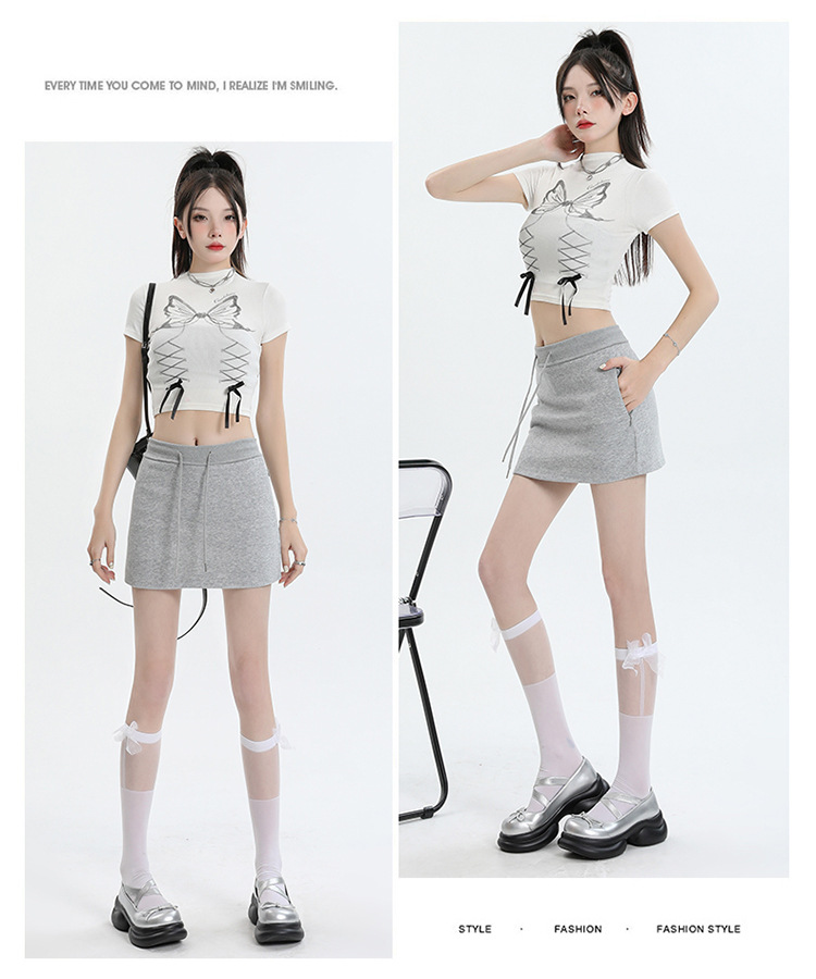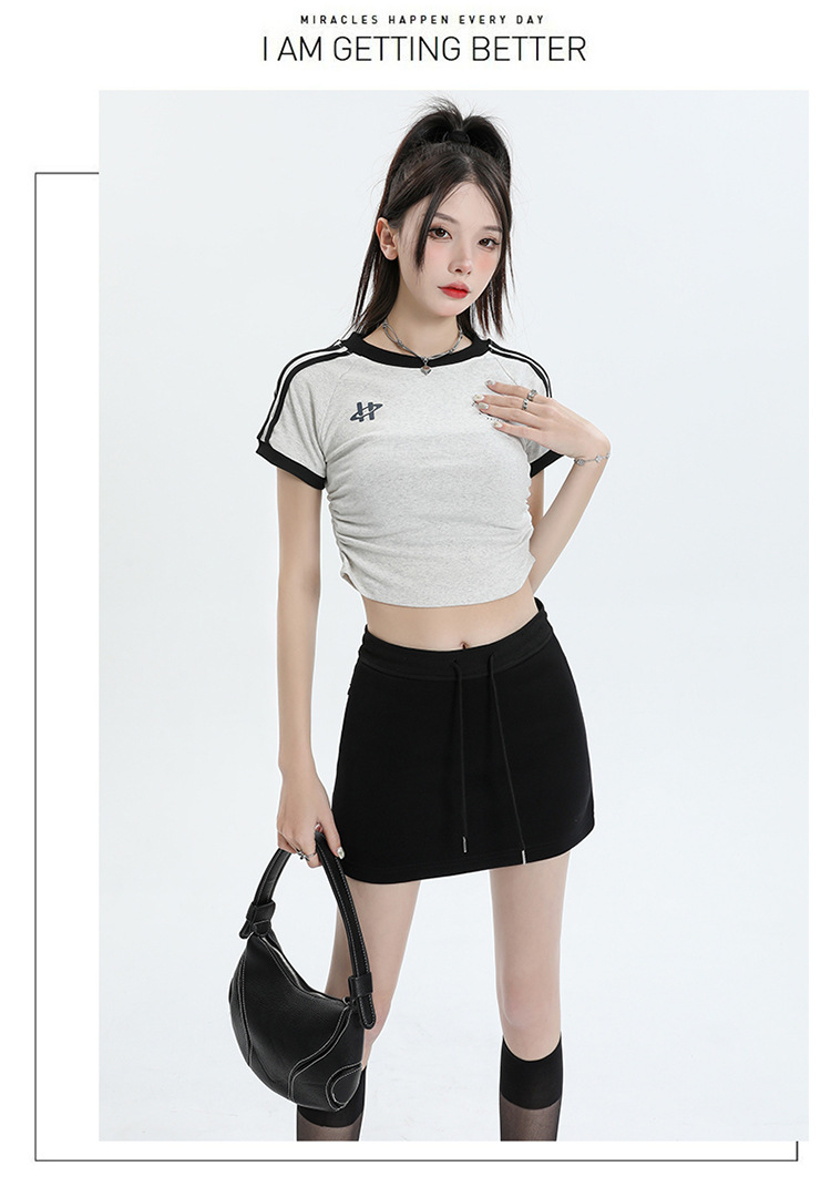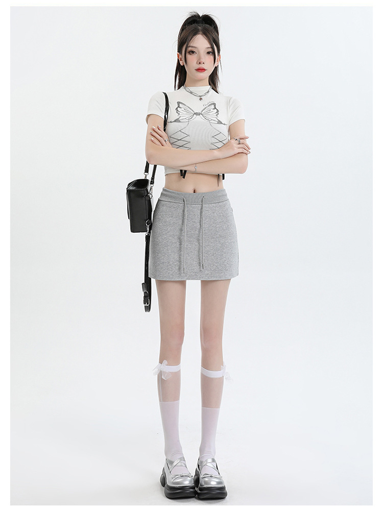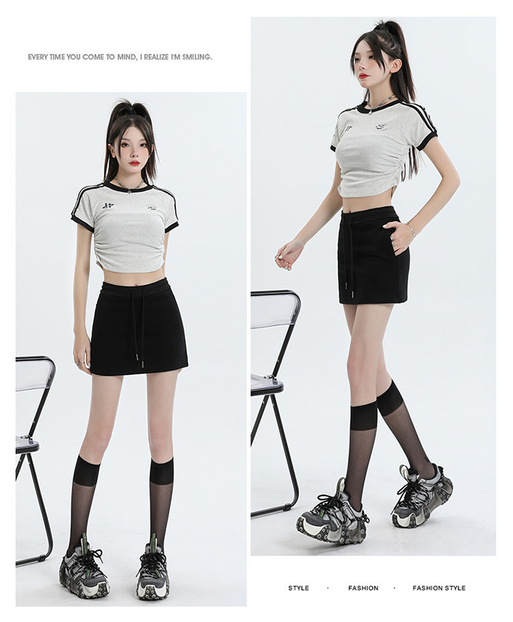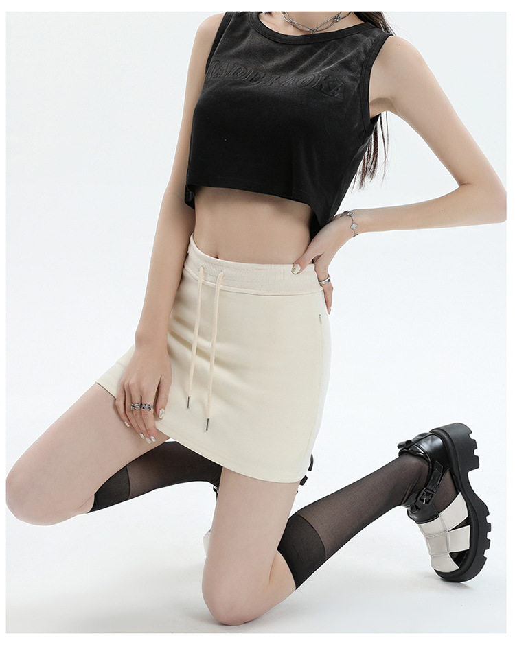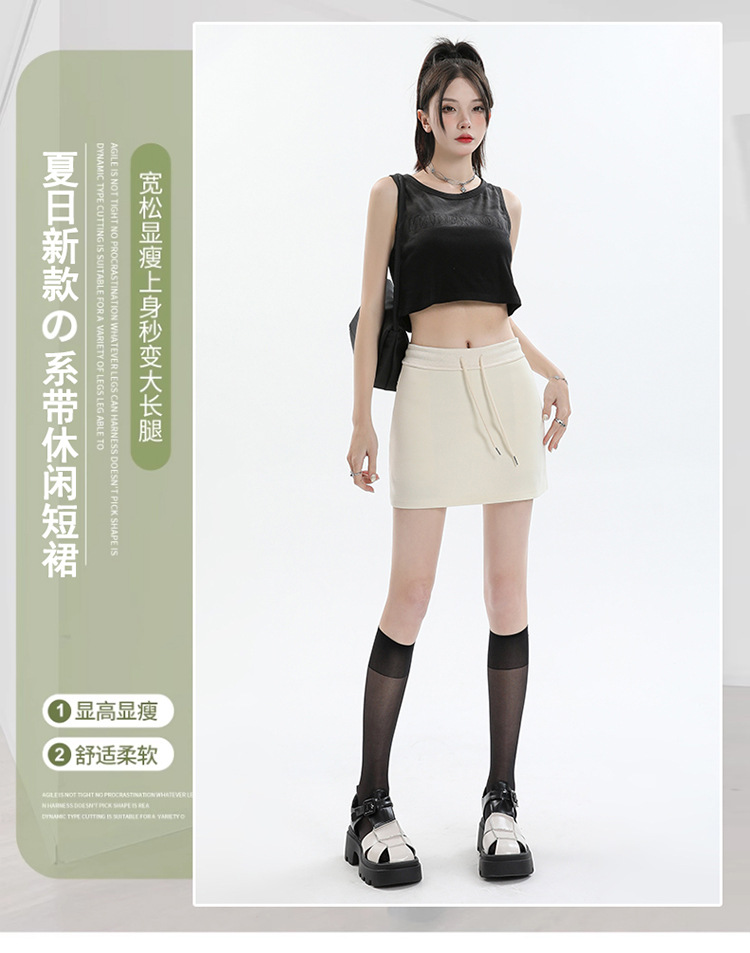 2025 여름 새로운 캐주얼 매운 소녀 미니 스커트 A 라인 스커트 화이트 블랙 그레이 셔닐스토어 가기
