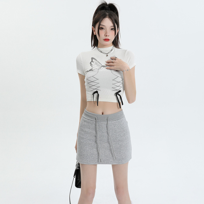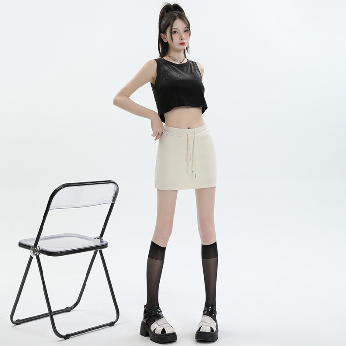 2025 여름 새로운 캐주얼 매운 소녀 미니 스커트 A 라인 스커트 화이트 블랙 그레이 셔닐