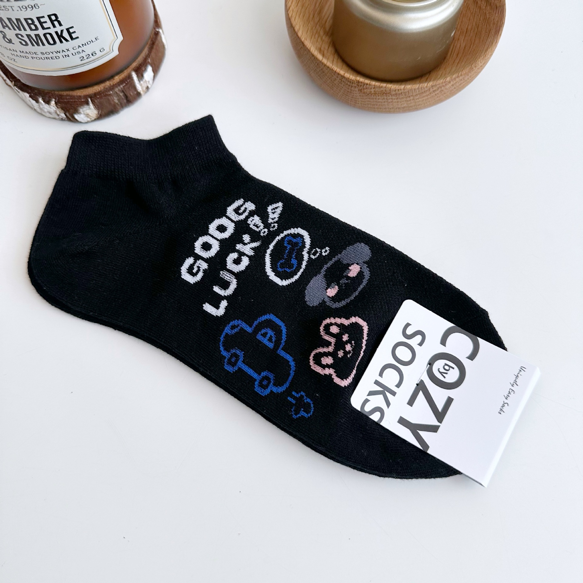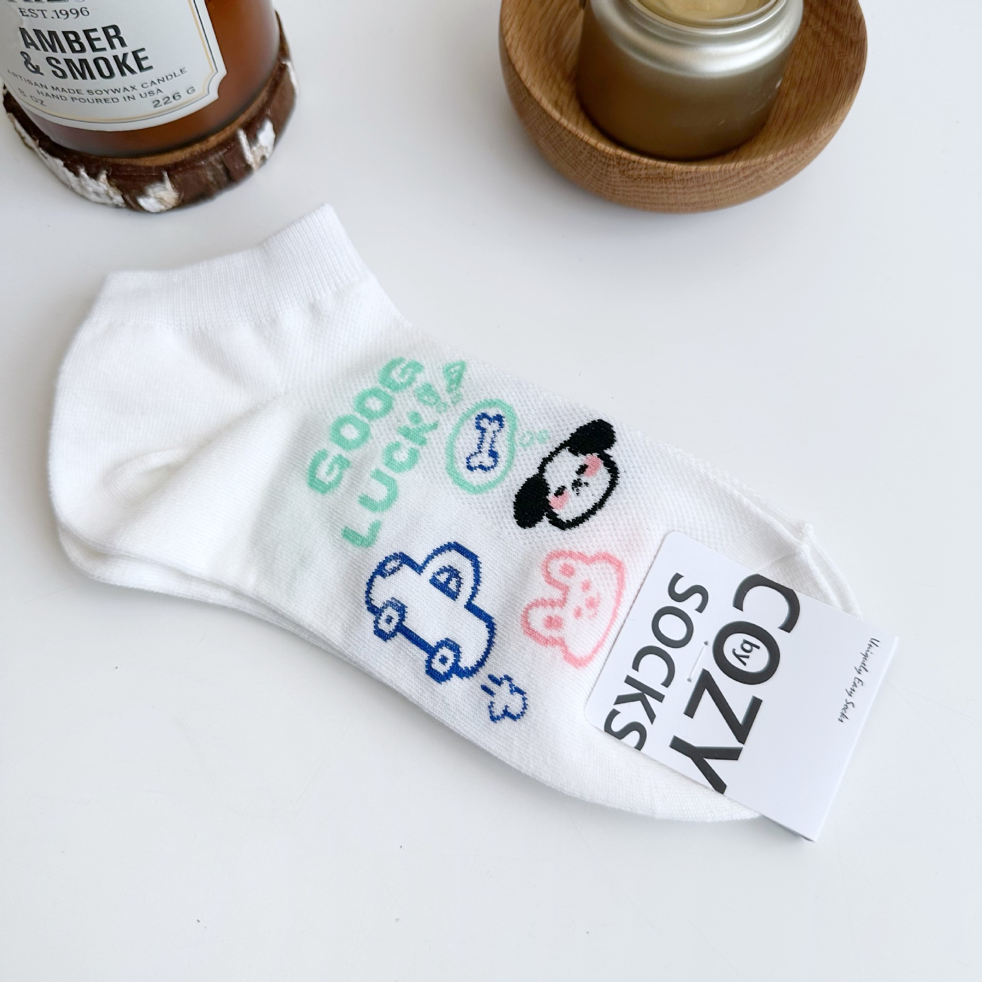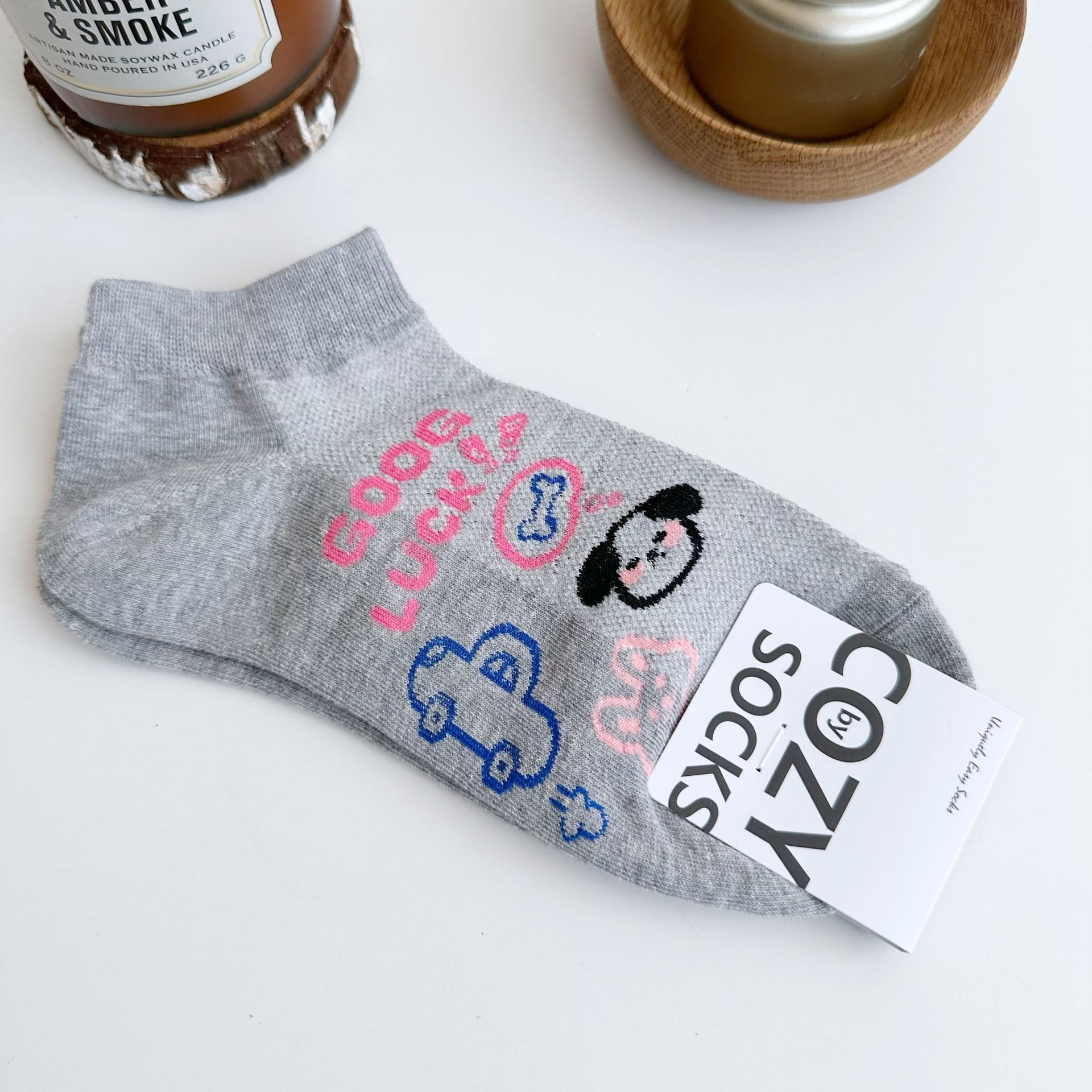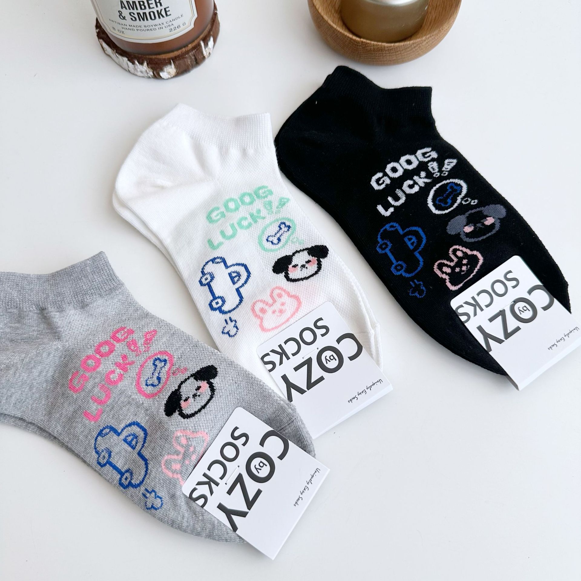 [재고 있음] 한국 양말 여름 통기성 메쉬 귀여운 만화 개 영어 알파벳 여성 양말면 양말스토어 가기