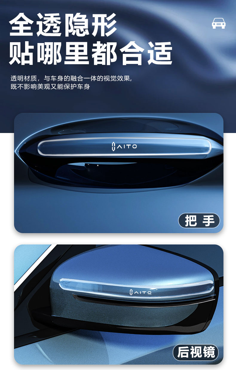 22/24 모델 Wenjie m7 특수 도어 충돌 방지 스트립 바디 투명 긁힘 방지 자동차 백미러 도어 핸들 스티커스토어 가기