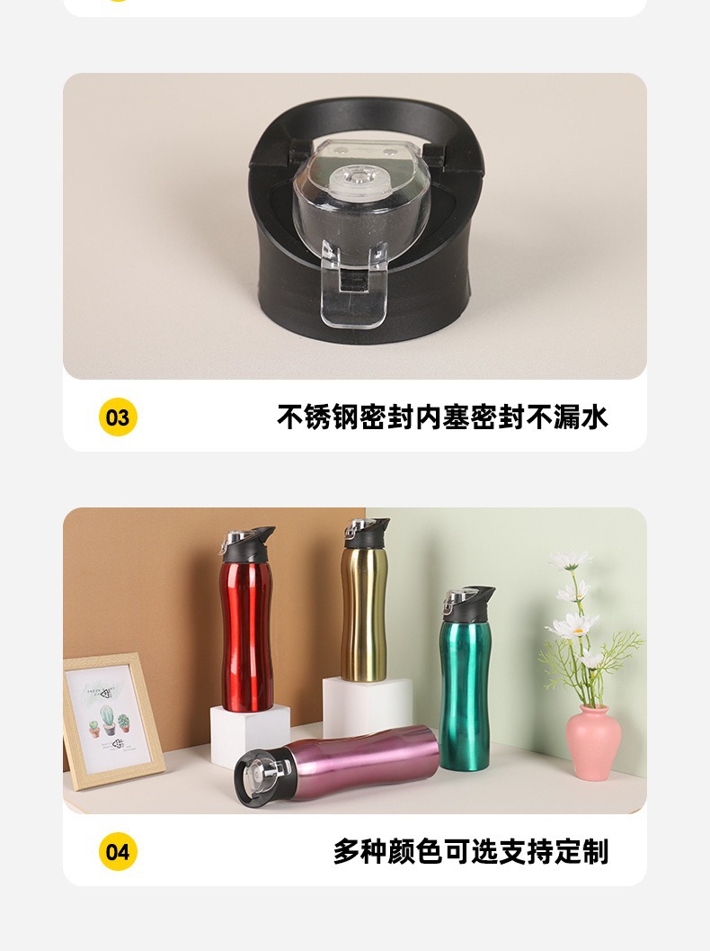 304 단일 레이어 스테인레스 스틸 스포츠 물병, 손잡이 포함, 휴대용 등산 물병, 야외 대용량 사이클링 물컵