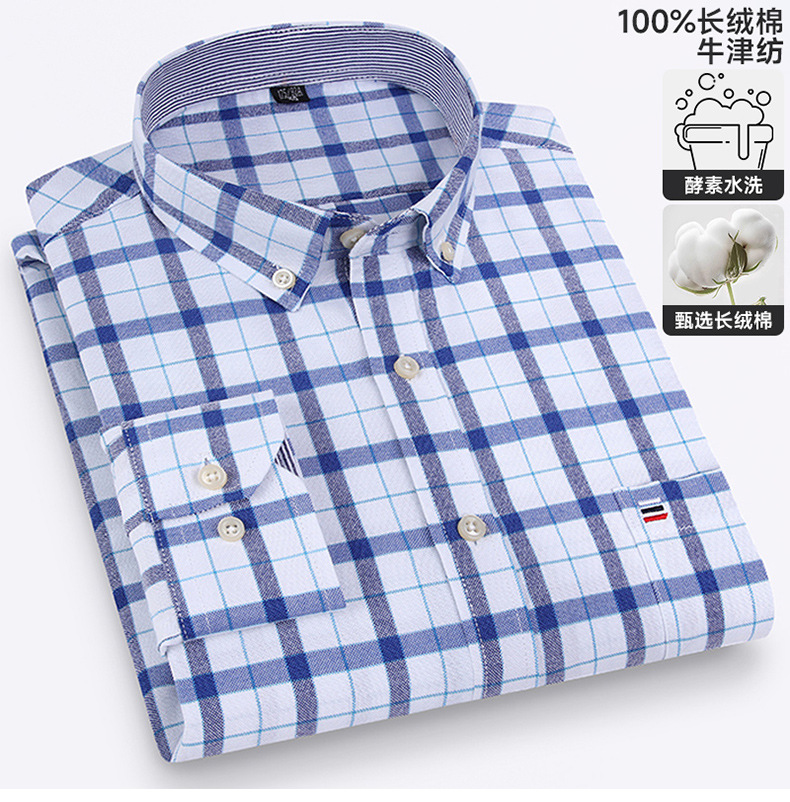 공장 직접 100% 면 남성 옥스포드 긴 소매 셔츠 중년 캐주얼 격자 무늬 면화 플러스 사이즈 셔츠스토어 가기