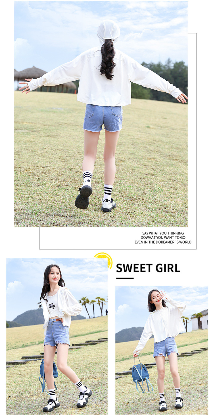 고품질 여아용 짧은 자외선 차단 의류, 좋은 원단 자외선 차단 의류, 2025년 여름 의류, 중대형 아동 피부 의류, 얇은 재킷스토어 가기