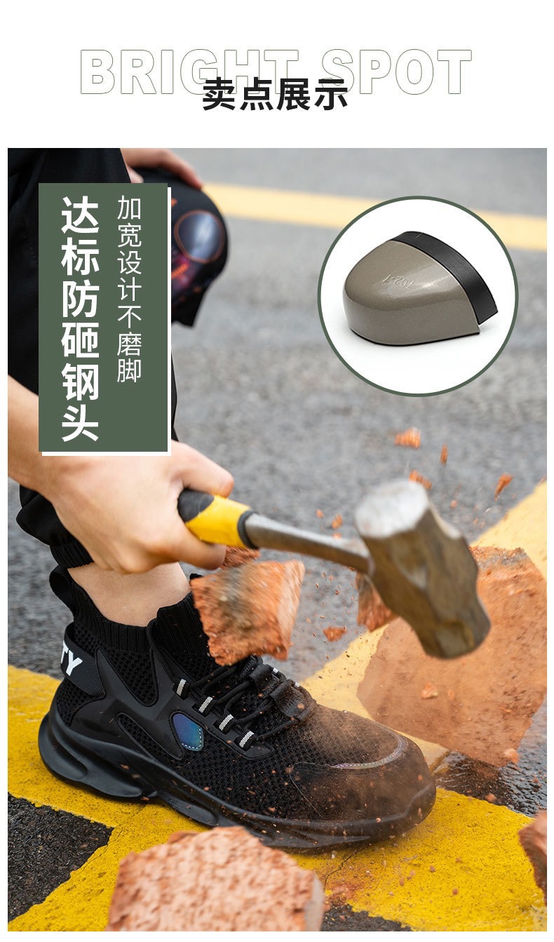 남성용 노동 보호 신발, 여름 통기성, 스매싱 방지 및 펑크 방지 보호 신발, 가볍고 편안하며 장기간 서 있어도 피곤하지 않은 작업 신발 도매