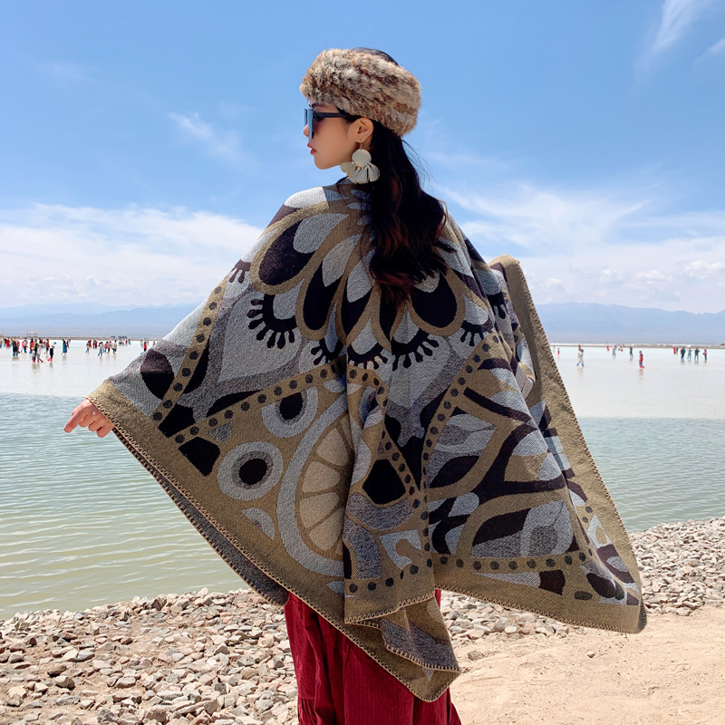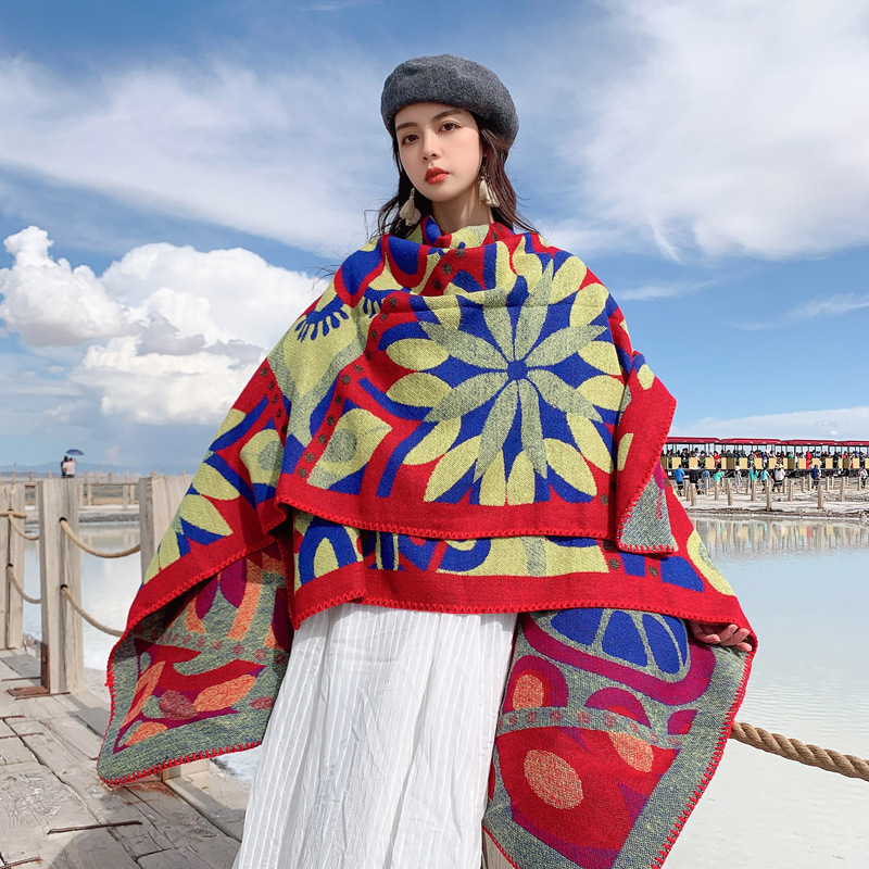 가을, 겨울 두꺼운 목도리 티베트 신장 초원 북서부 휴가 여행 사진 민족 스타일 망토 빨간색 여성스토어 가기